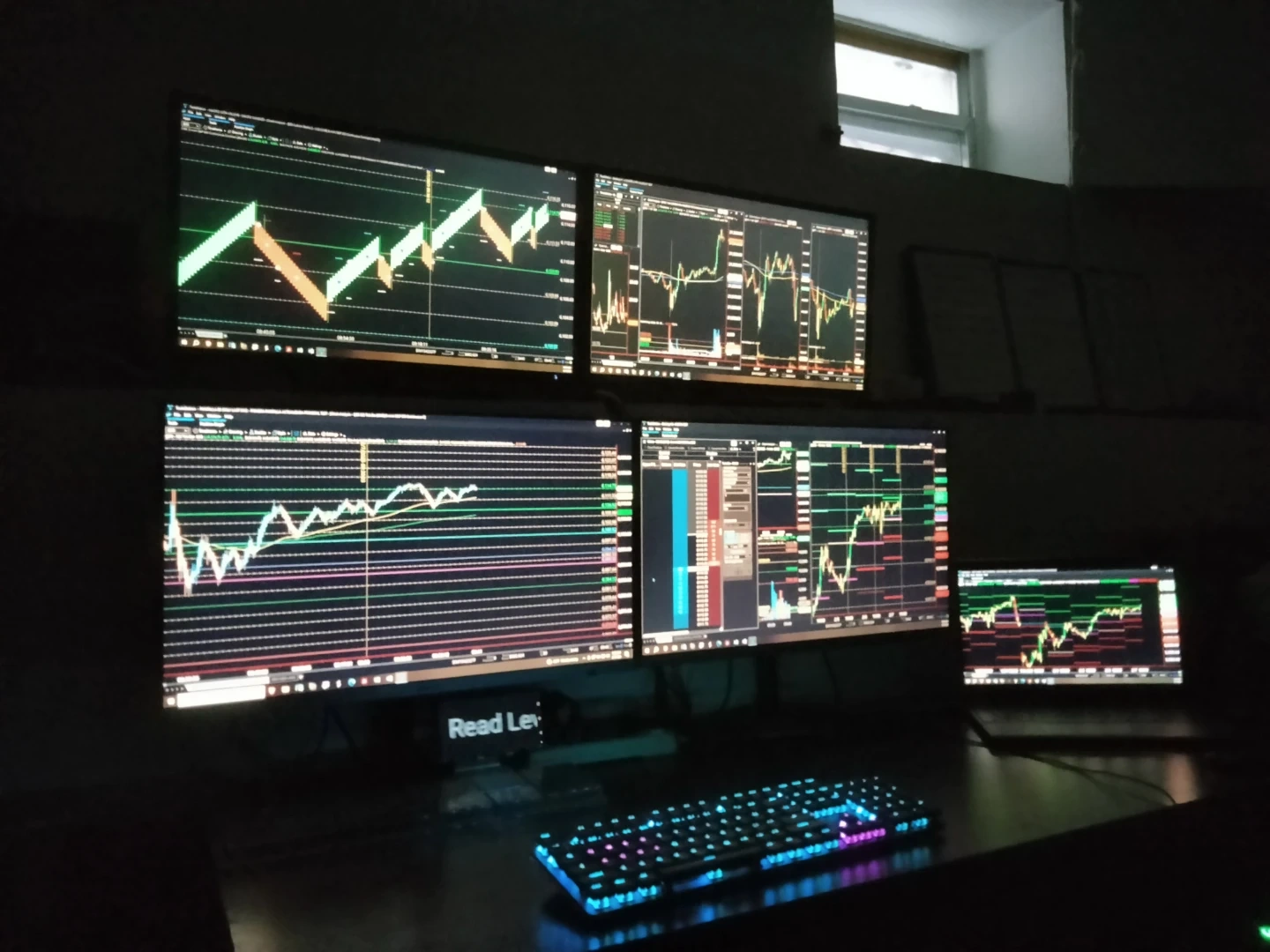 4 monitors, the screens can move up and down, side to side and the rack can also move the screen up and down, you can put it on any position even vertical.