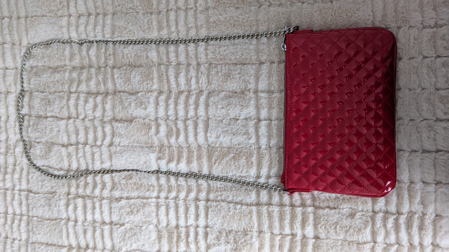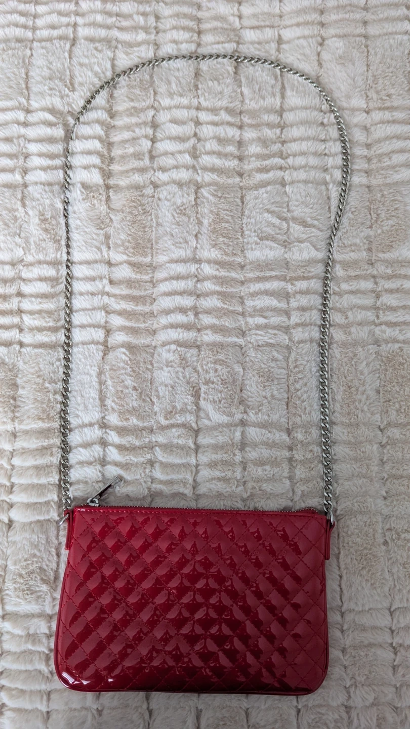 Selling a Zara quilted crossbody bag in a vibrant red! It has a silver chain strap, perfect for adding a pop of colour to any outfit. The bag is in great condition and ready for a new owner