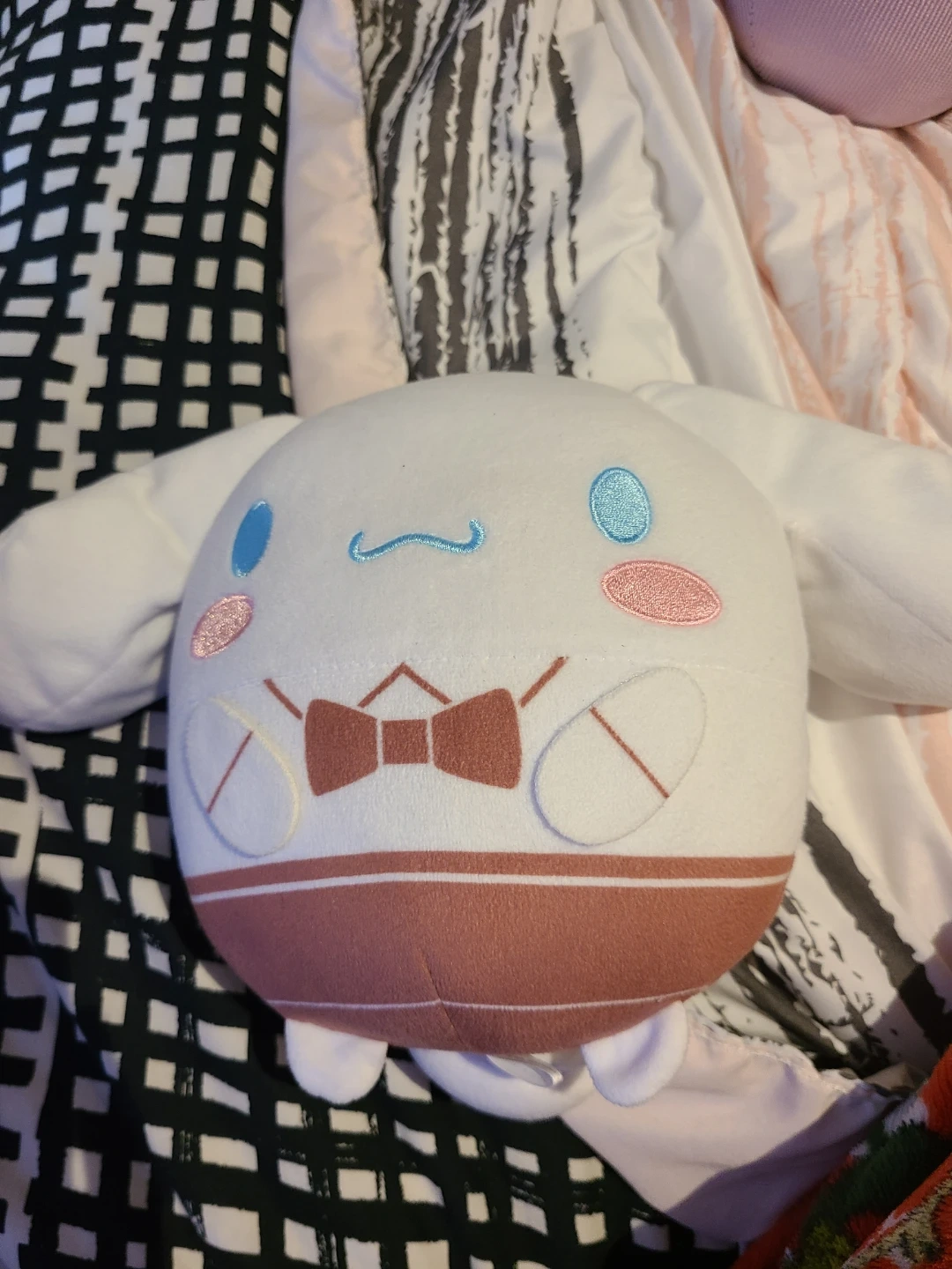 Here's a super cute Cinnamoroll plushie! It's in great condition and ready to brighten up your day. It's soft and cuddly, perfect for any fan of Sanrio characters
