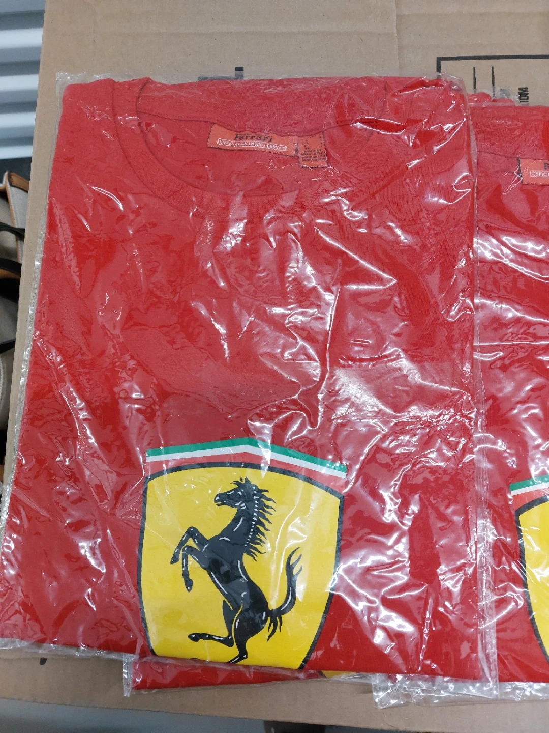 Selling a brand new Ferrari T-shirt in size Large! It's a vibrant red and features the iconic Ferrari logo. It's still in its original packaging.
