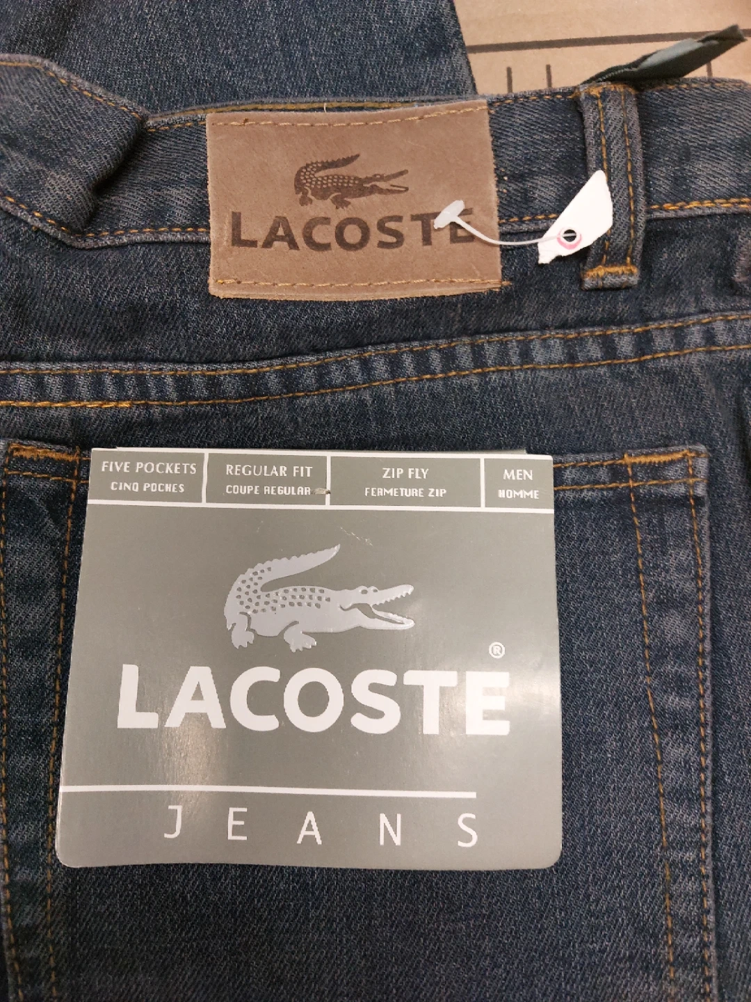 Selling a pair of Lacoste jeans in a regular fit for men. They feature a zip fly and the classic five-pocket design. Perfect for everyday wear!