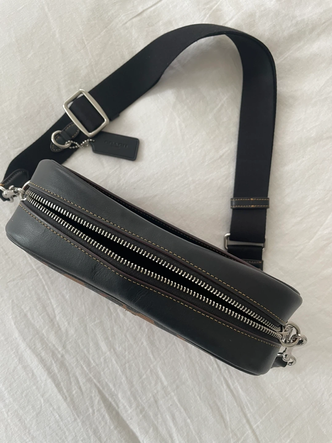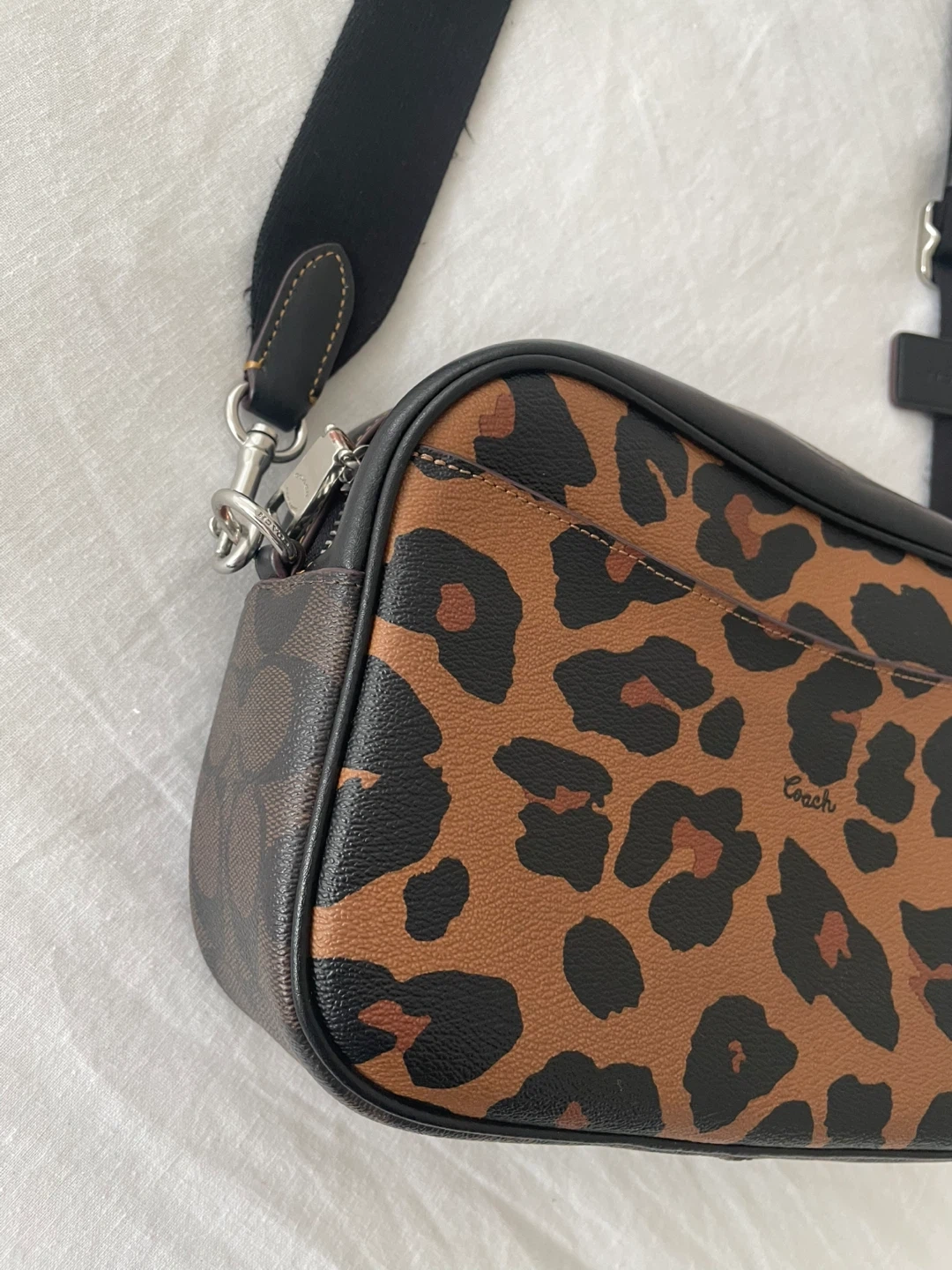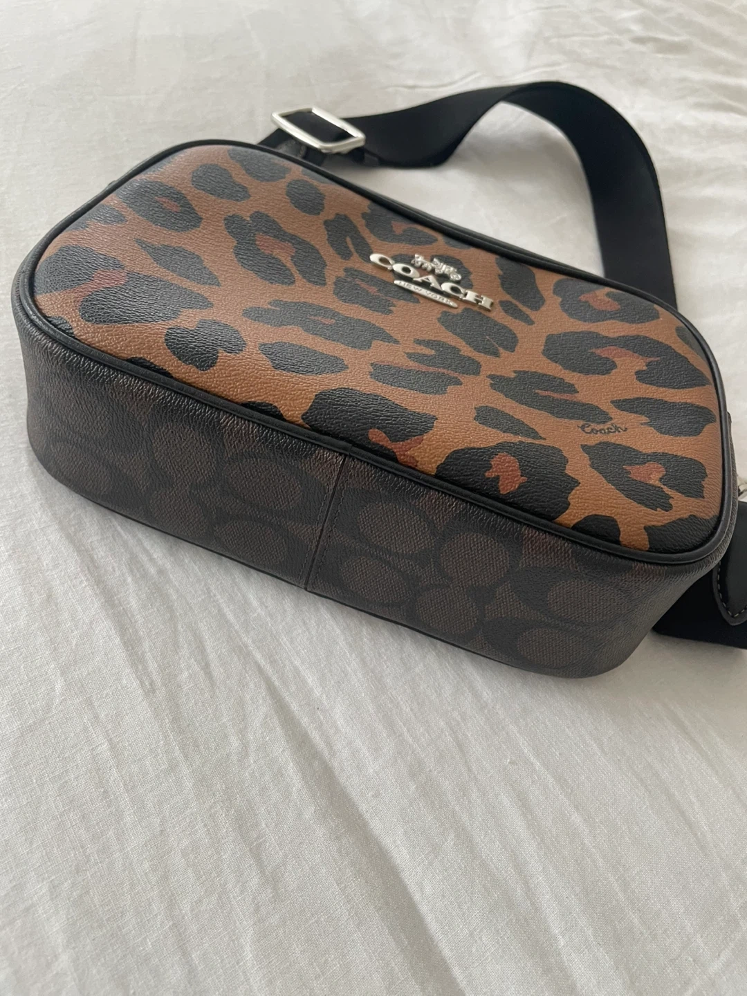 Selling a Coach camera bag in a stylish leopard print! It's in great condition and features a black strap. Perfect for carrying your essentials in style