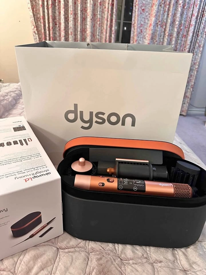 Brand new Dyson Airwrap i.d. (Special Amber Silk) with a 2-yr warranty, retail value with additional Dyson clips & Dyson travel bag.