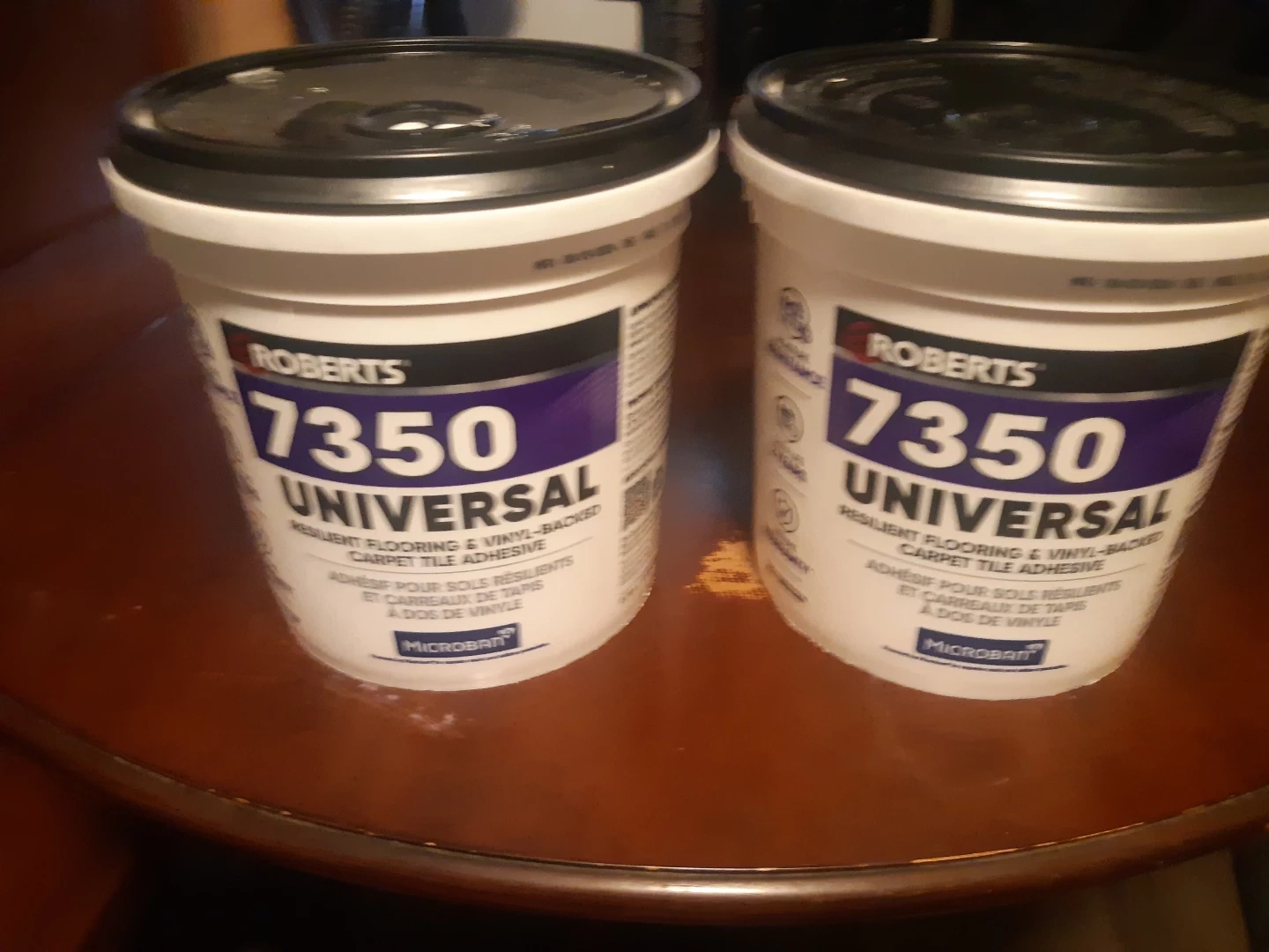 Selling two tubs of Roberts 7350 Universal Resilient Flooring & Vinyl-Backed Carpet Tile Adhesive. They're perfect for your flooring needs! The manufacturing date is 2024 September 19