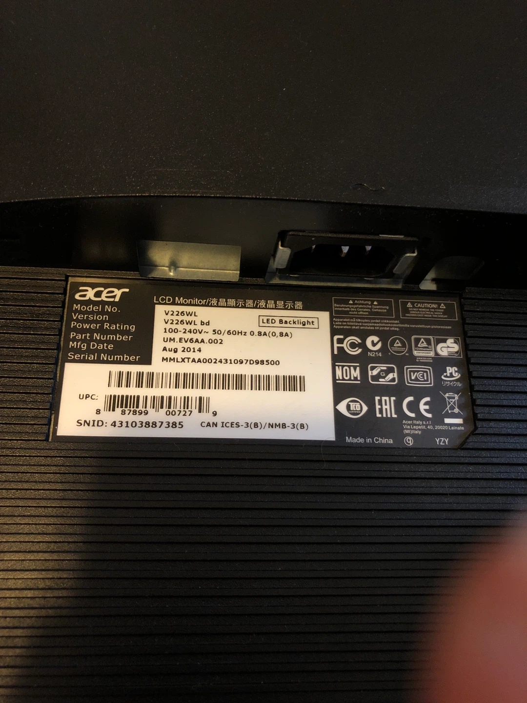 Selling an Acer V226WL LCD monitor in good condition. It's a 22-inch monitor perfect for home or office use. Includes a VGA and a power cable to get you set up!
