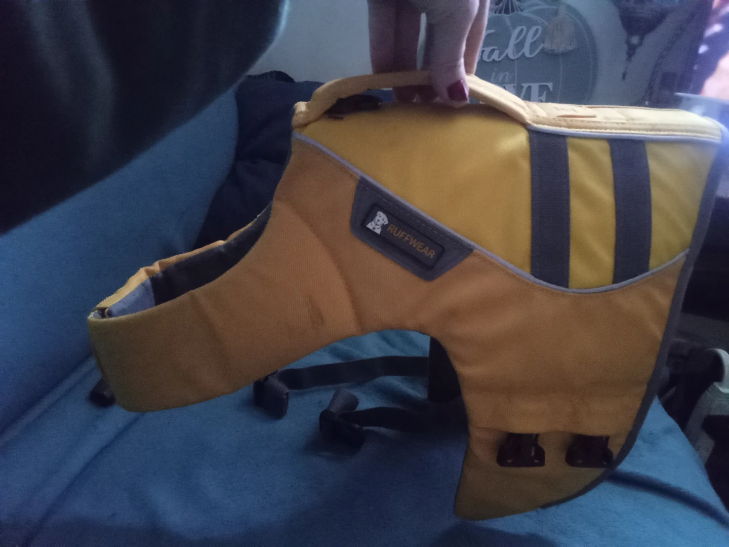 Selling a Ruffwear Float Coat dog life jacket in size small. It's in great condition and ready for your furry friend's water adventures! The bright yellow colour ensures high visibility in the water.