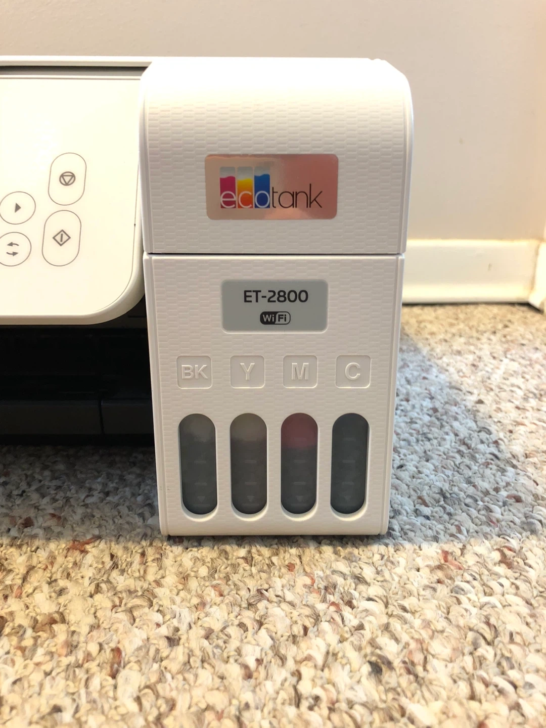 Selling an Epson EcoTank ET-2800 all-in-one printer. It's in great shape and ready for a new home office or student! This printer is known for its EcoTank system, which means you save on ink costs. It's a great choice for everyday printing needs