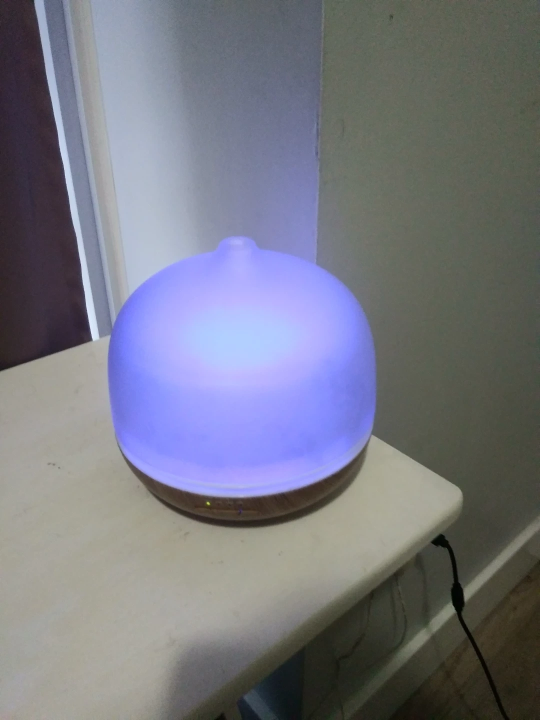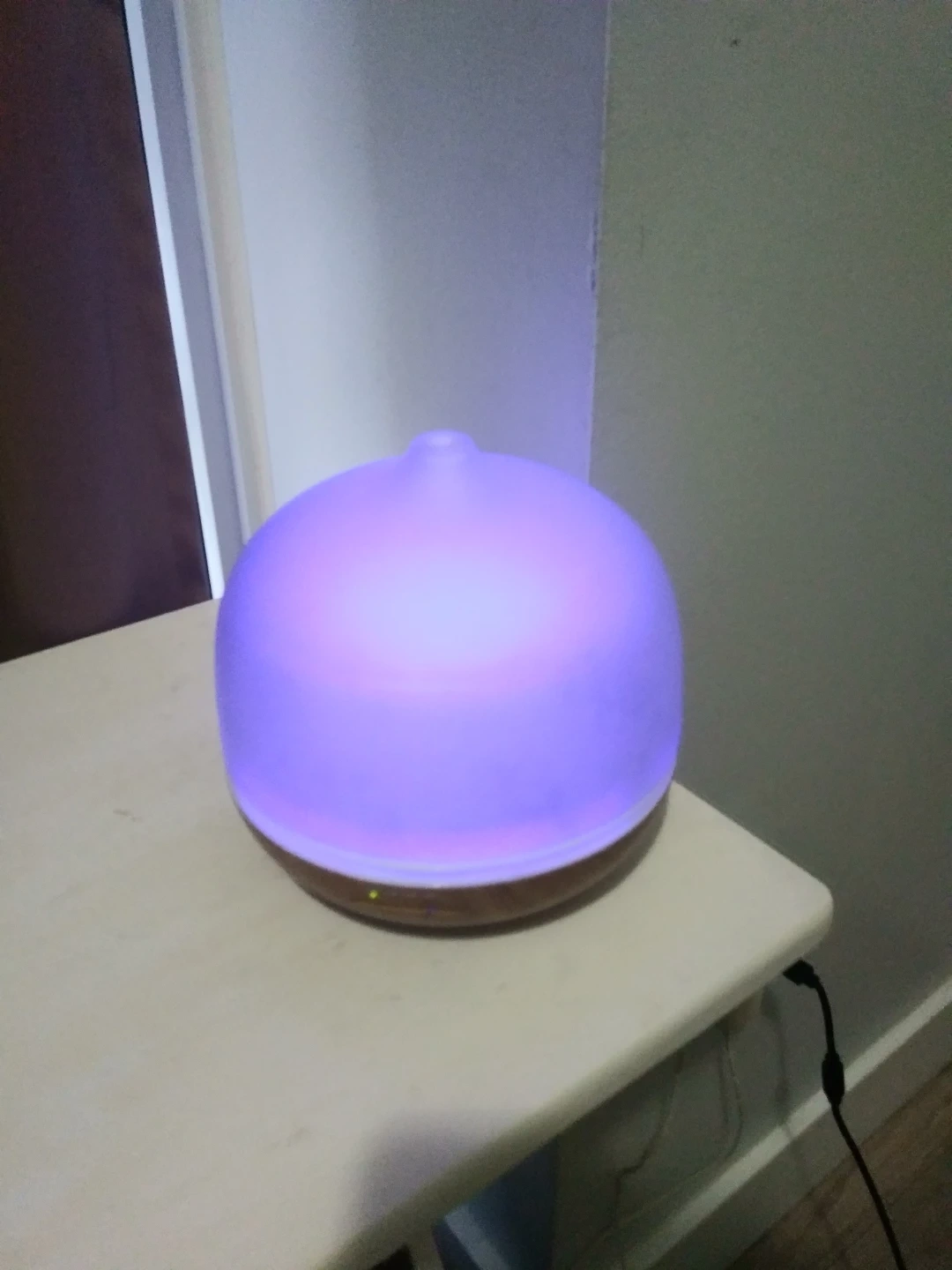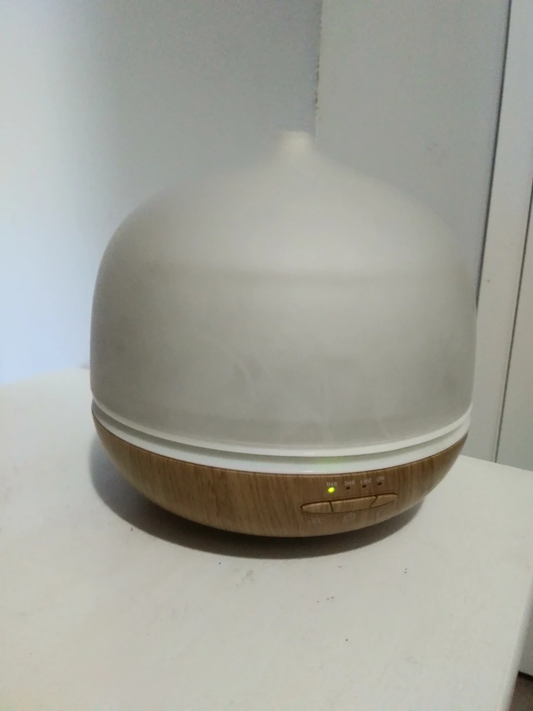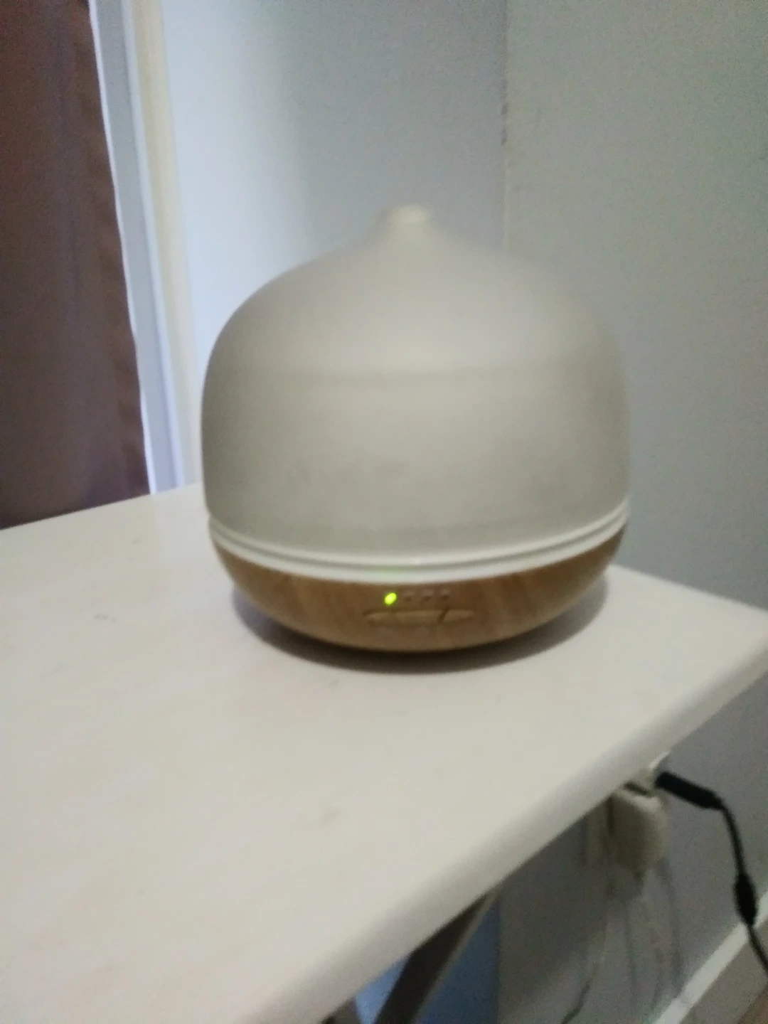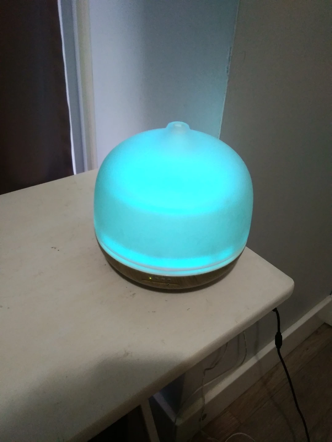 I'm selling an aroma diffuser! It's in great condition and ready to use. It has a wood-look base and a translucent top that lights up with different colours. Perfect for adding a relaxing scent to any room