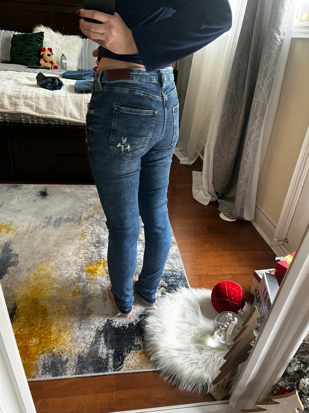 Selling a pair of skinny jeans with ripped detailing! They're a stylish denim wash and in great condition. Perfect for adding a bit of edge to any outfit