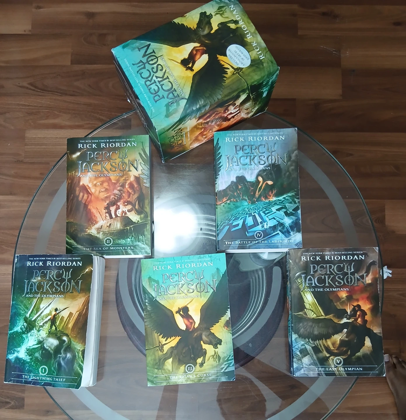 Selling the complete Percy Jackson and the Olympians series by Rick Riordan! Bought from Indigo book store and just finished reading. They are in exellent/very very good condition paperback books. This set includes all five books in the series, perfect for any young reader or fan of mythology. Includes a bonus poster of art by John Rocco!