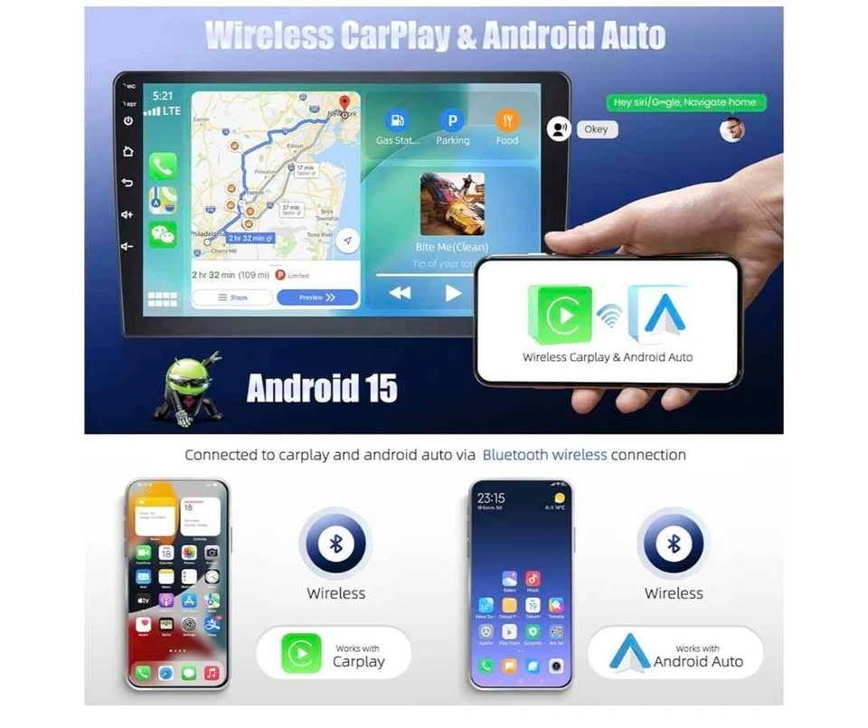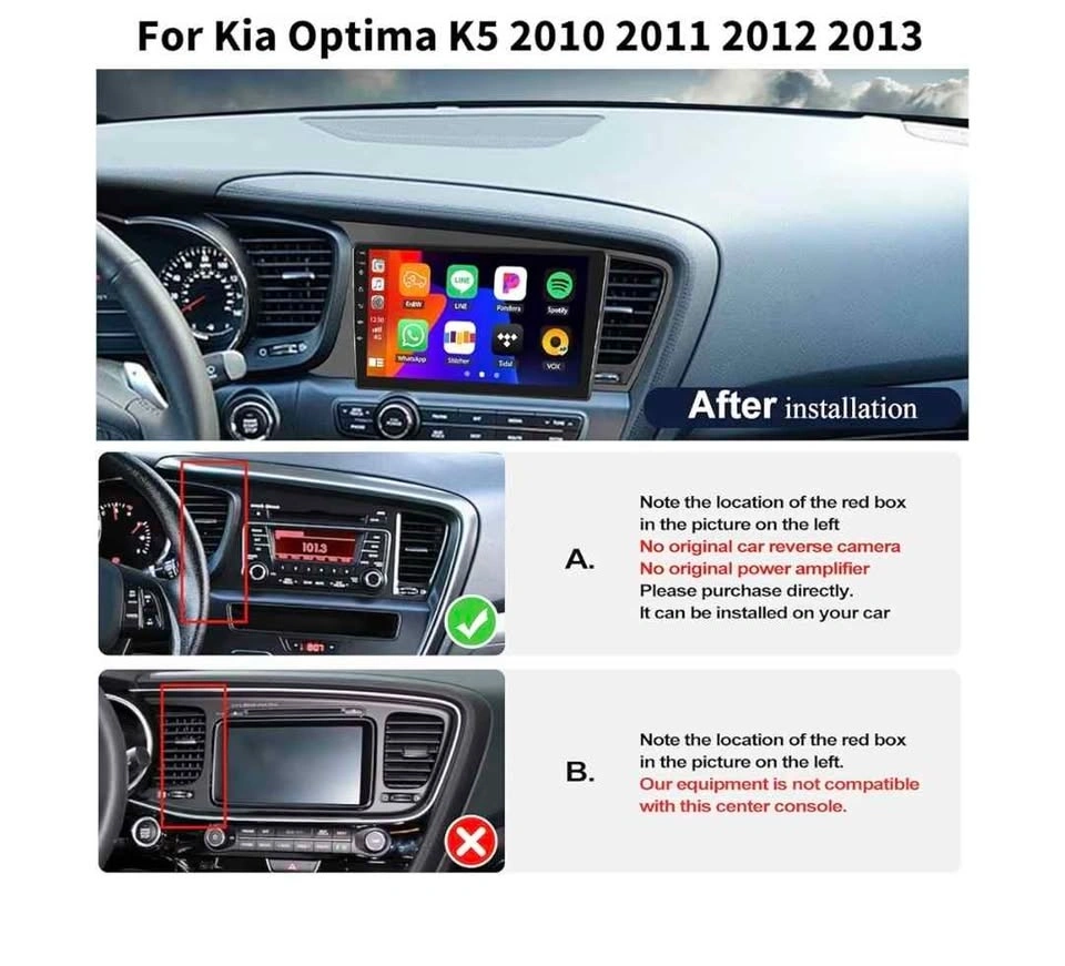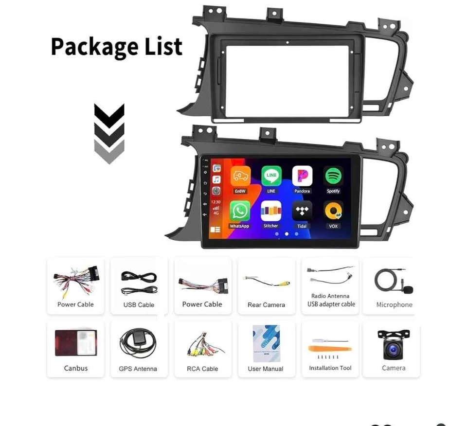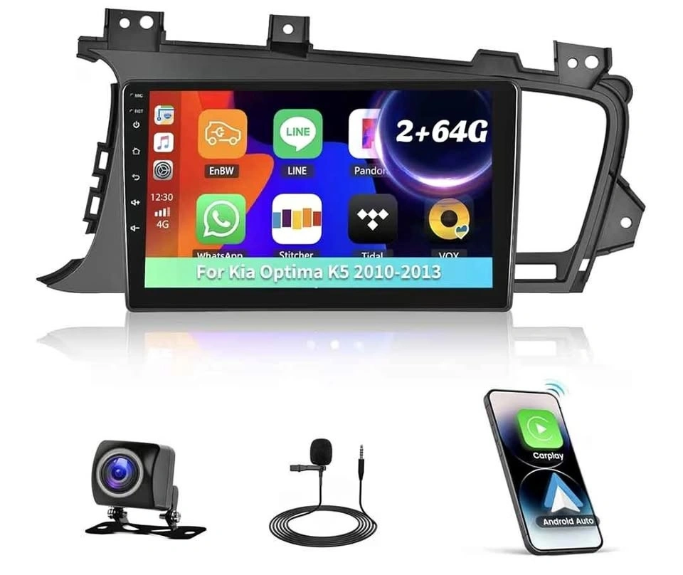 2+64G Android 15 Car Stereo para Kia Optima K5 2010 2011 2012 2013 con Carplay inalámbrico Android Auto, 9 "Pantalla táctil Radio de coche con WiFi GPS Espejo Link Bluetooth EQ FM RDS SWC