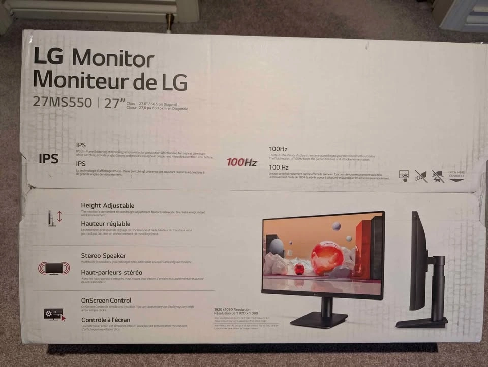 LG 27" FHD 100Hz Monitor + Box & HDMI