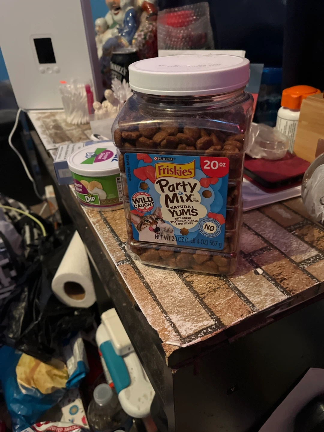 Selling a 20oz container of Purina Friskies Party Mix Wild Caught Yums cat treats! These crunchy treats are packed with vitamins and minerals to keep your kitty happy and healthy. Perfect for rewarding good behavior or just showing your feline friend some love