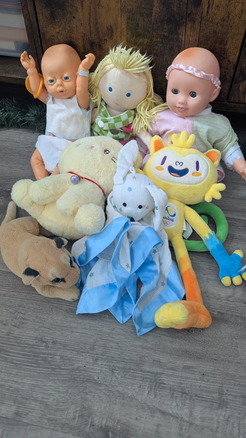 A collection of gently used plush toys and dolls, perfect for playtime ! Includes a variety of characters and styles.
