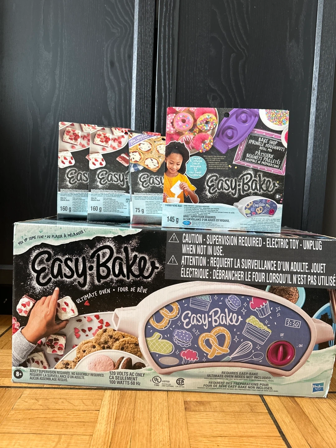 Selling an Easy-Bake Ultimate Oven with some refill mixes! It's in great condition and ready for some baking fun. Adult supervision is required, and it's designed for ages 8+. The box includes the oven itself.