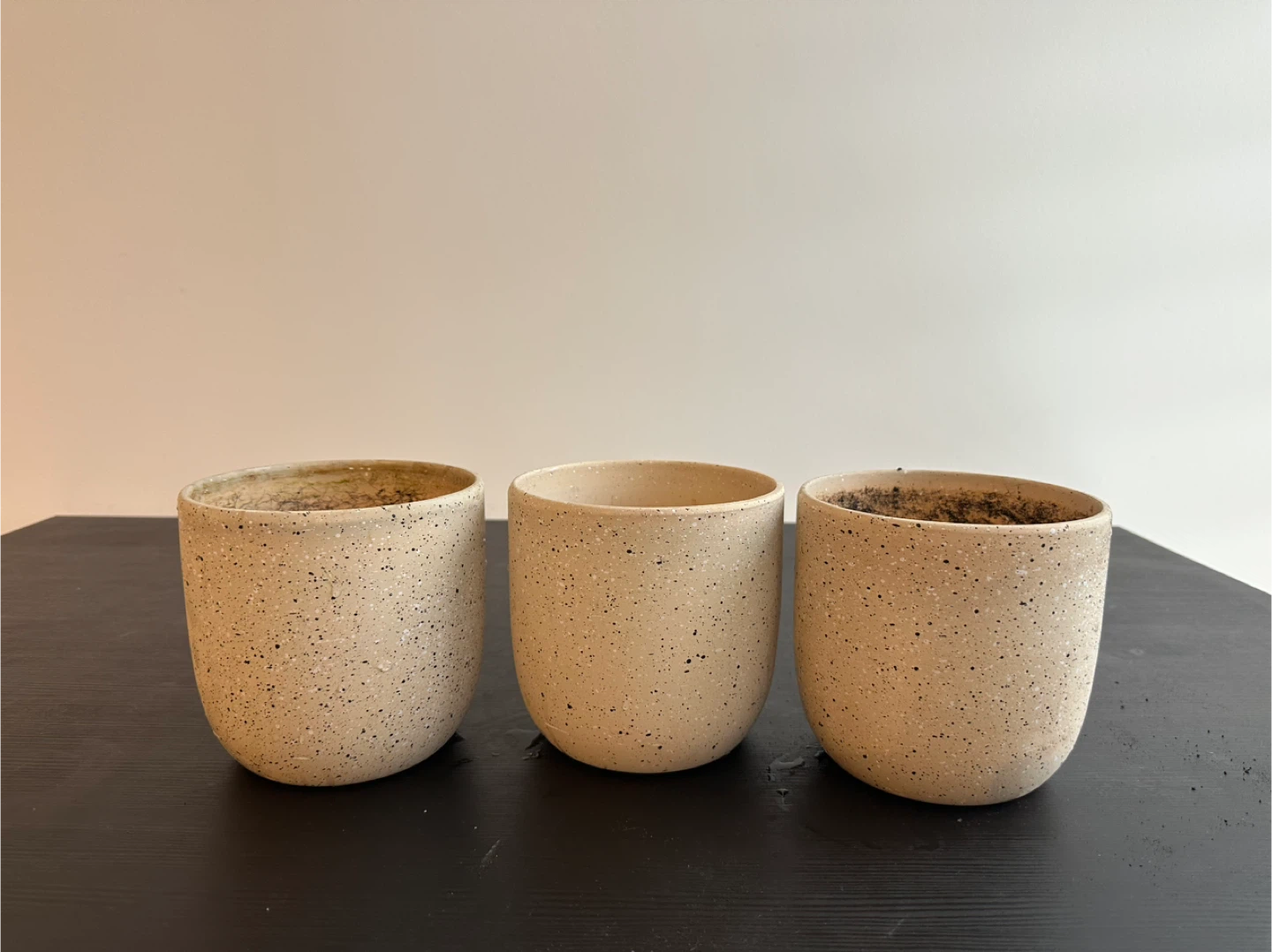 Three Beige Speckled Ceramic Plant Pots