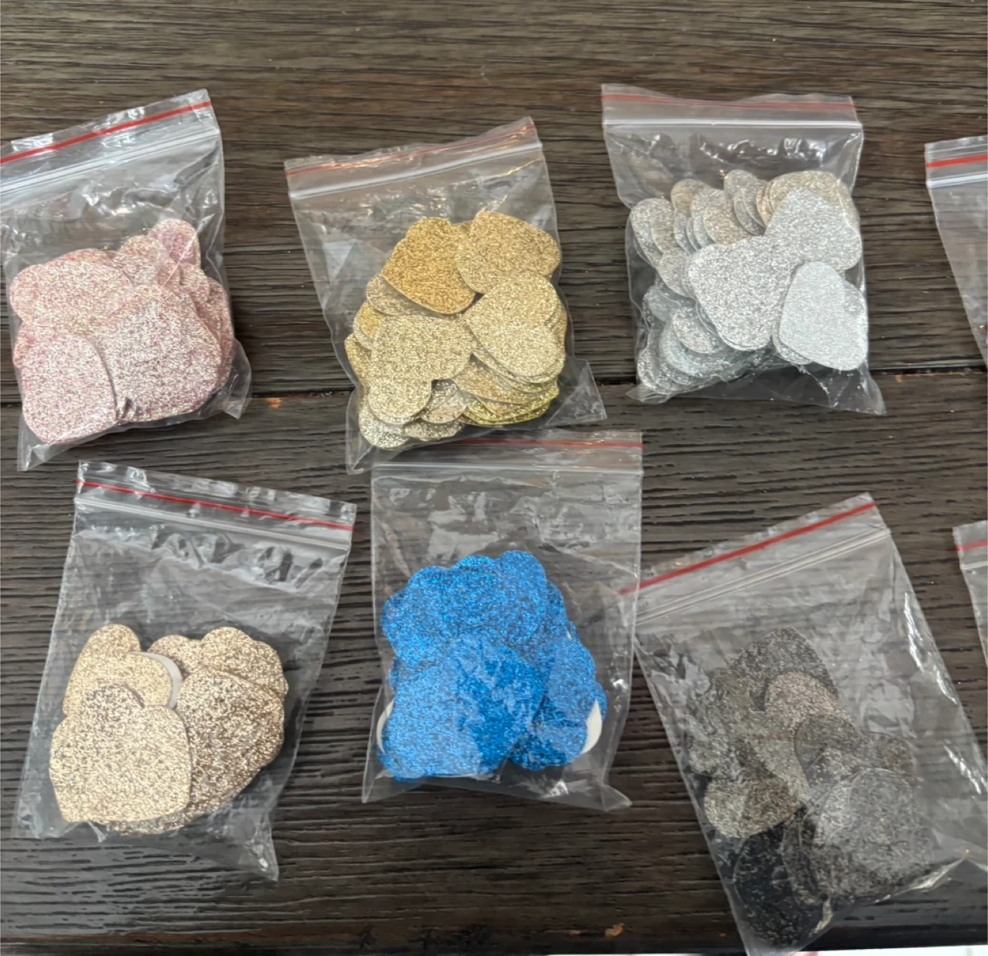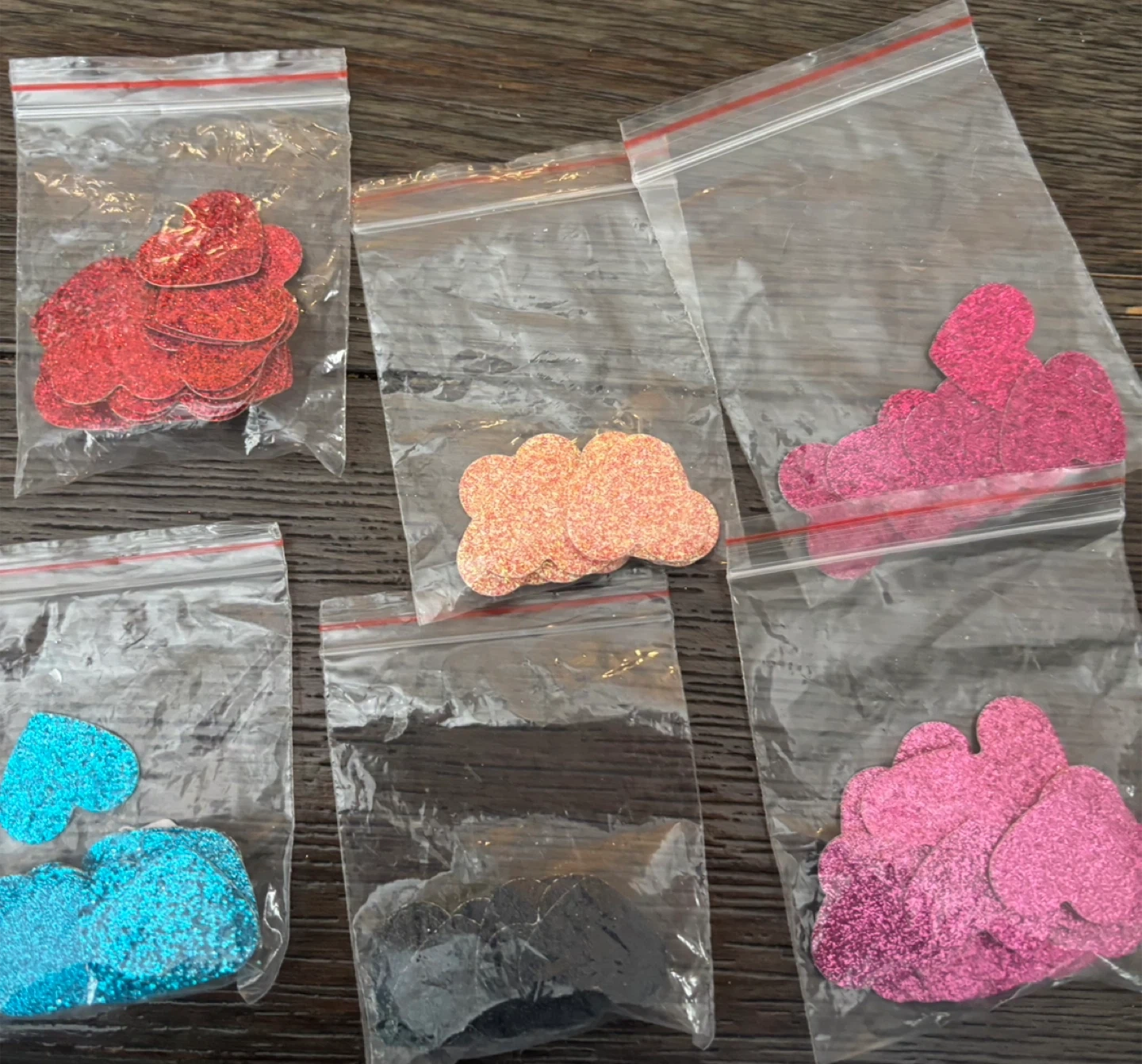 I'm selling assorted glitter heart embellishments! These are perfect for crafts, scrapbooking, or adding a little sparkle to any project. They come in various colours.