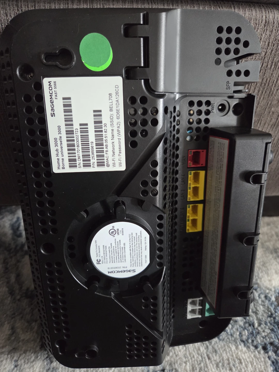 I’m selling a Bell Home Hub 3000 (Sagemcom) Details: • Model: Bell Home Hub 3000 (Sagemcom) • Condition: Unused, fully functional • Tri-band Wi-Fi for better coverage and performance • Includes: • Power adapter • Ethernet cable • DSL cable • All original ports intact (LAN, DSL, etc.)