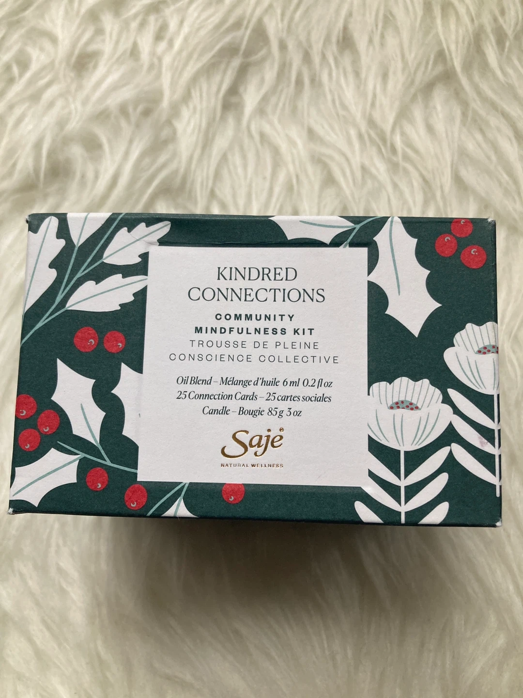 Limited edition “Kindred Connections” mindfulness kit. Contains: 6mL oil blend, candle, set of connections cards. Unopened, in original box.