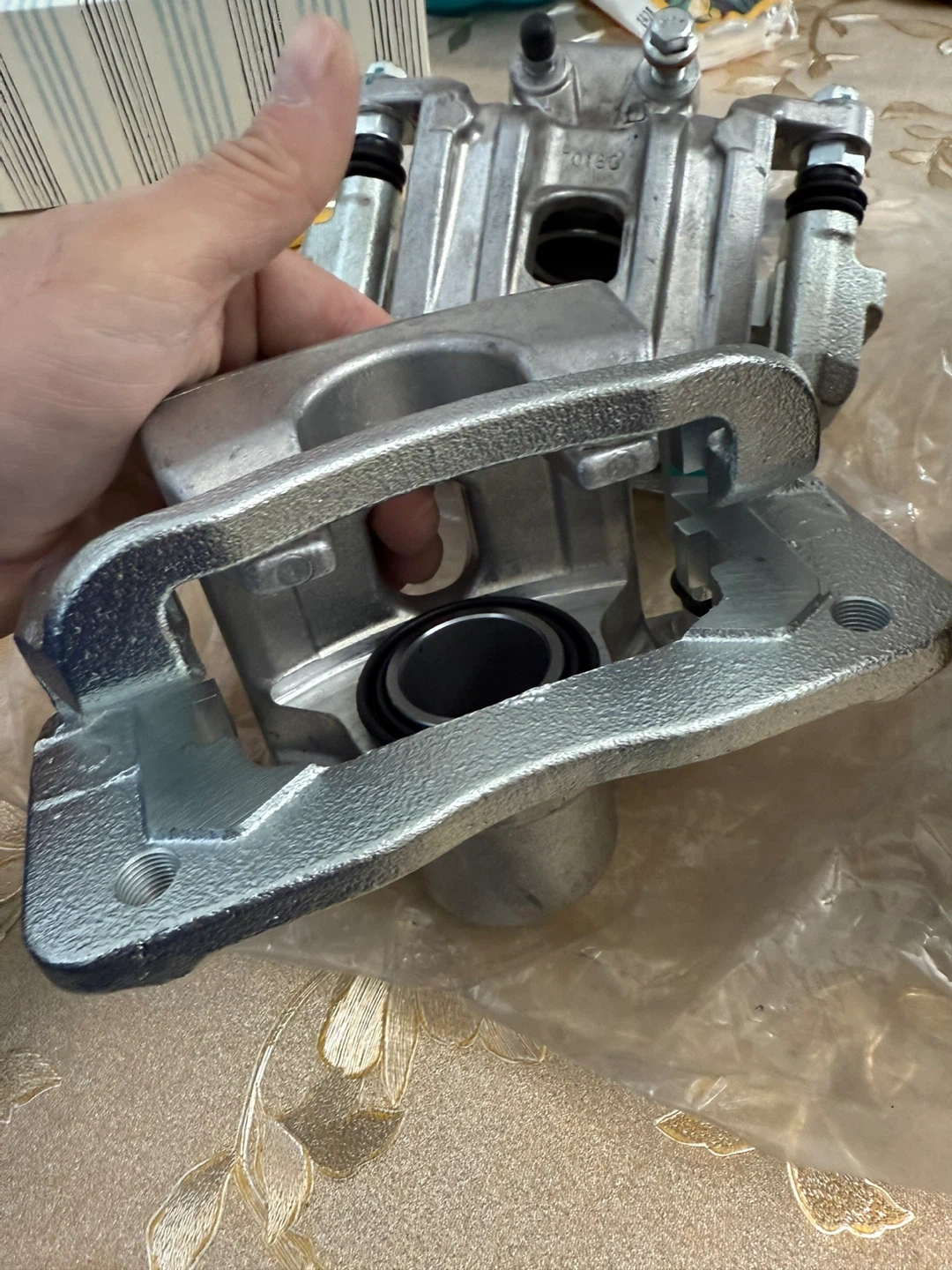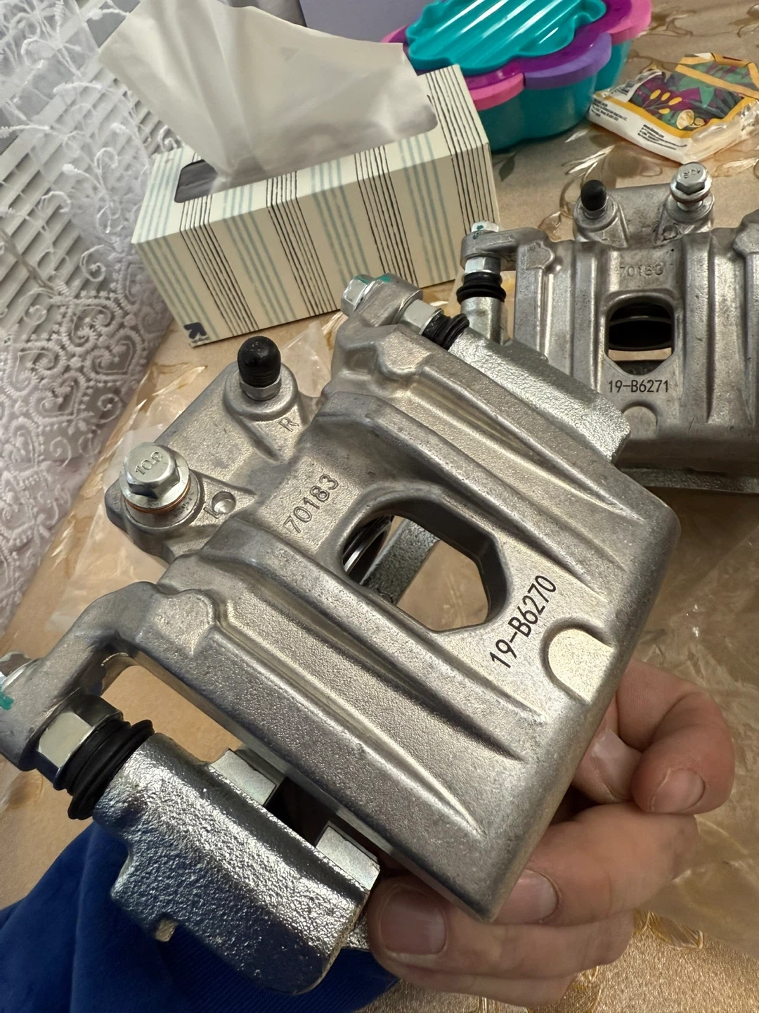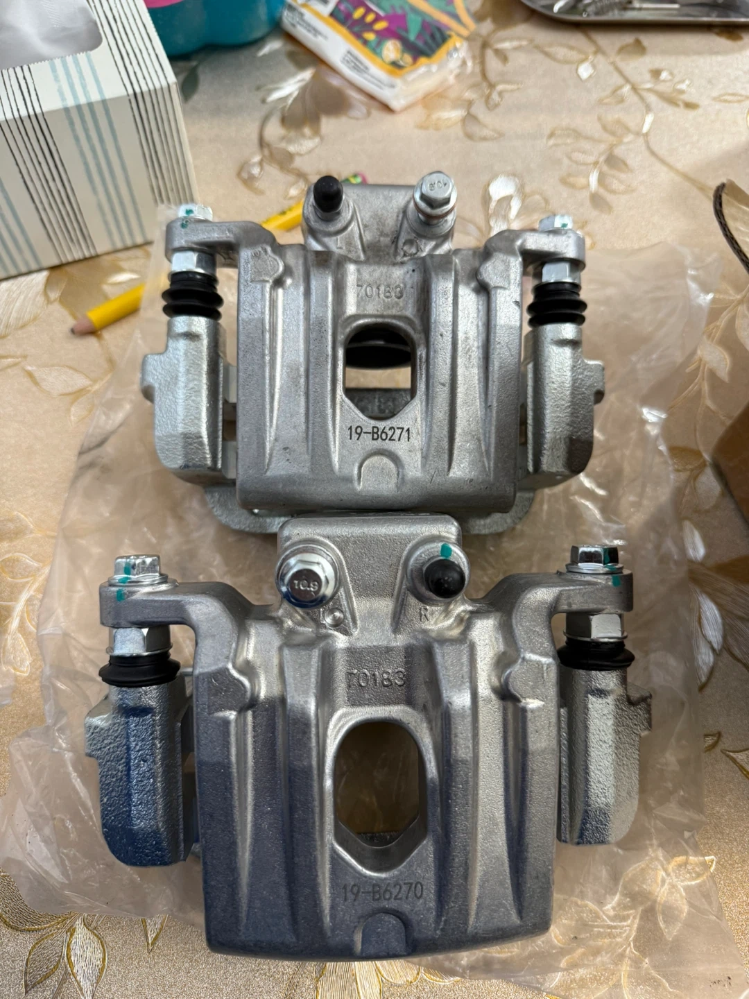 Selling a pair of car brake calipers. They are silver in color and appear to be in good condition. Perfect for your car repair needs!