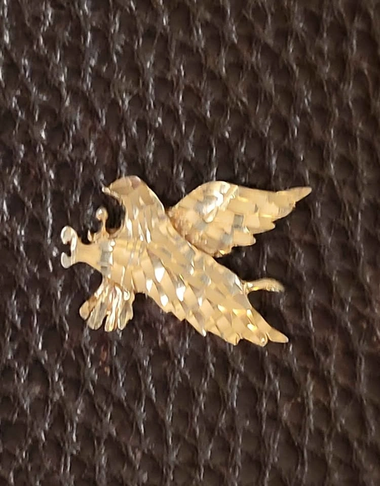 This 1.3 gram solid (stamped 10k) gold diamond cut eagle pendant is sure to impress!