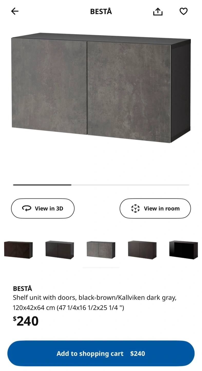 Selling an IKEA BESTA shelf unit with doors in a Kallviken dark gray doors.