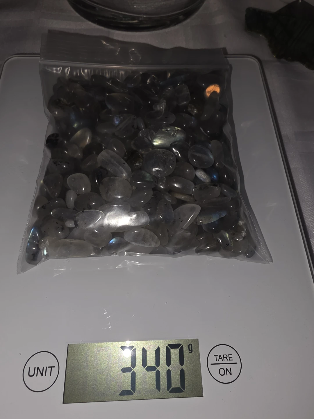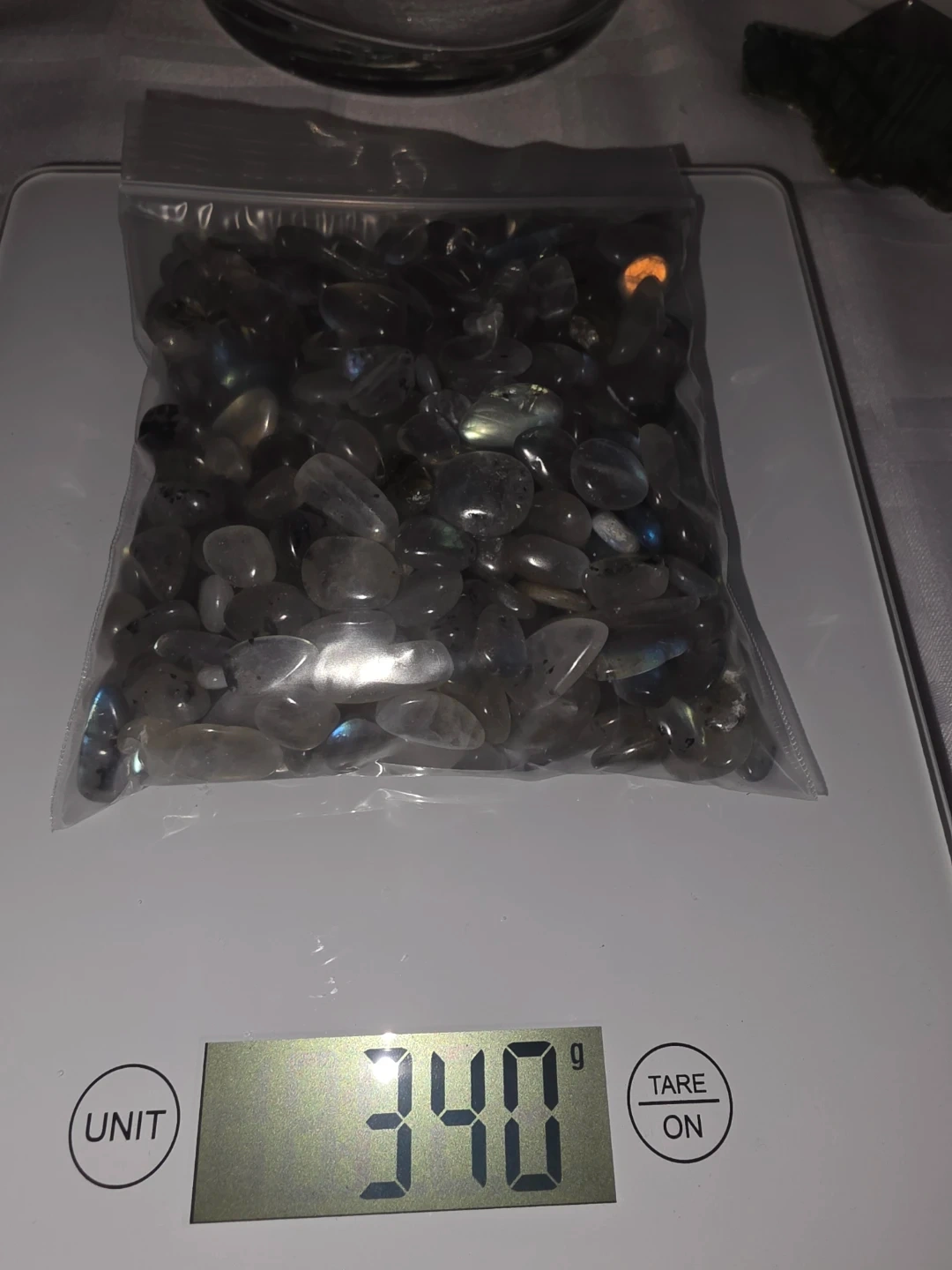 Bag of labradorite chips weighing 340g