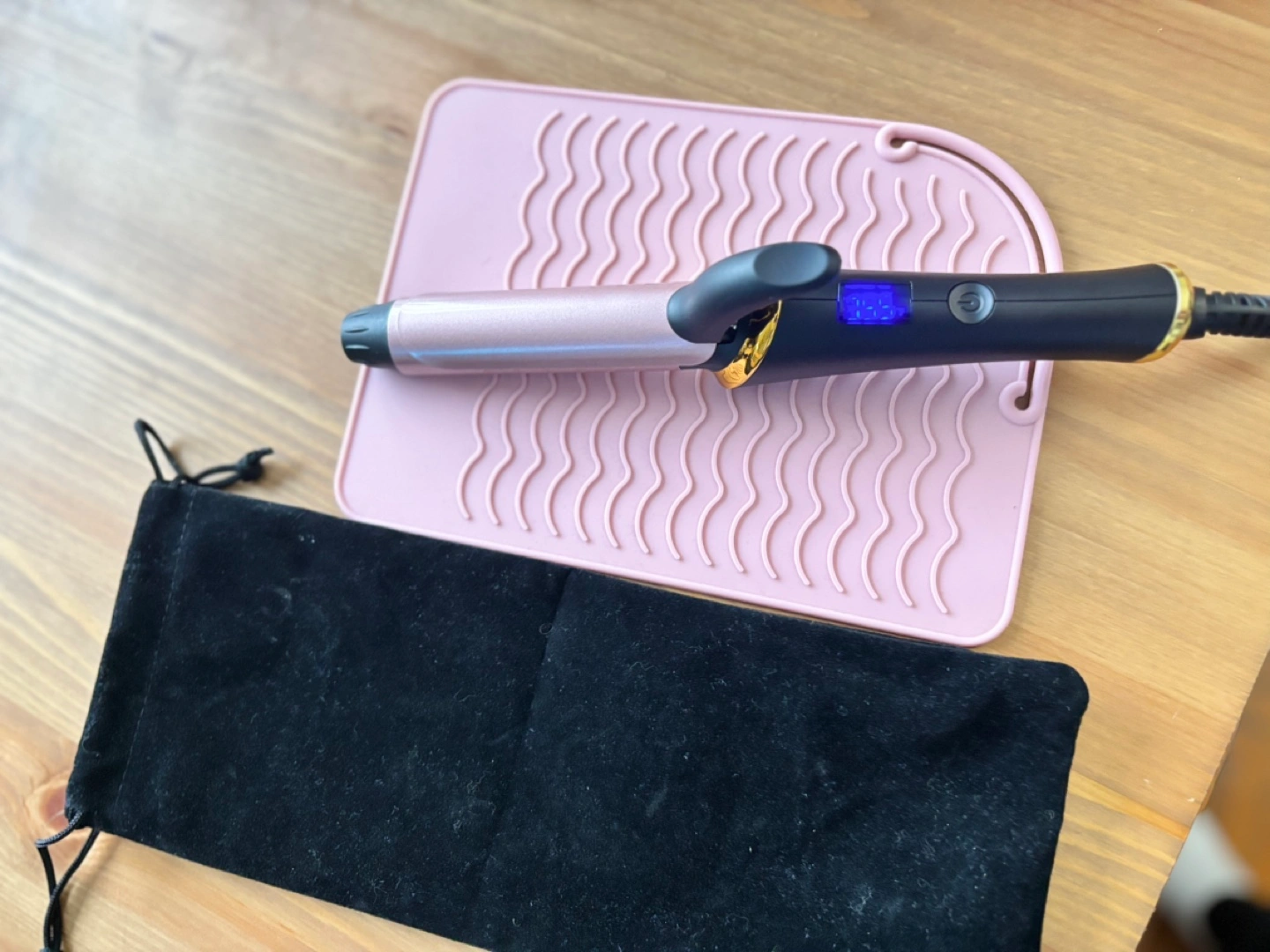 Curling Iron - Rose Gold & Black With a Case And a Silicone Mat