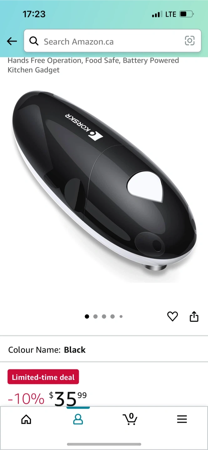 I'm selling a Korskr electric can opener in black! It's a hands-free operation, food safe, and battery powered. It leaves a smooth edge, so you don't have to worry about sharp edges. The box is included!