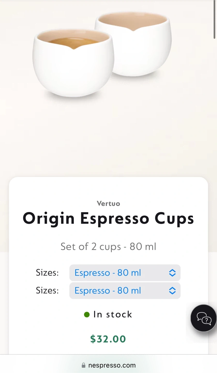 Selling a set of two Nespresso Vertuo Origin Espresso Cups! These 80 ml cups are perfect for enjoying your favourite espresso. They are in great condition and ready for a new home!
