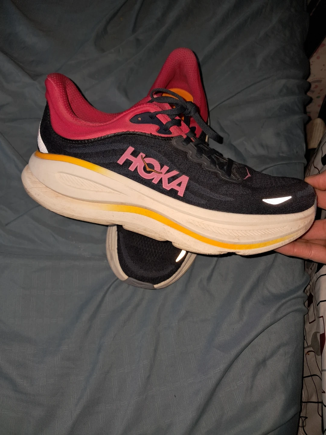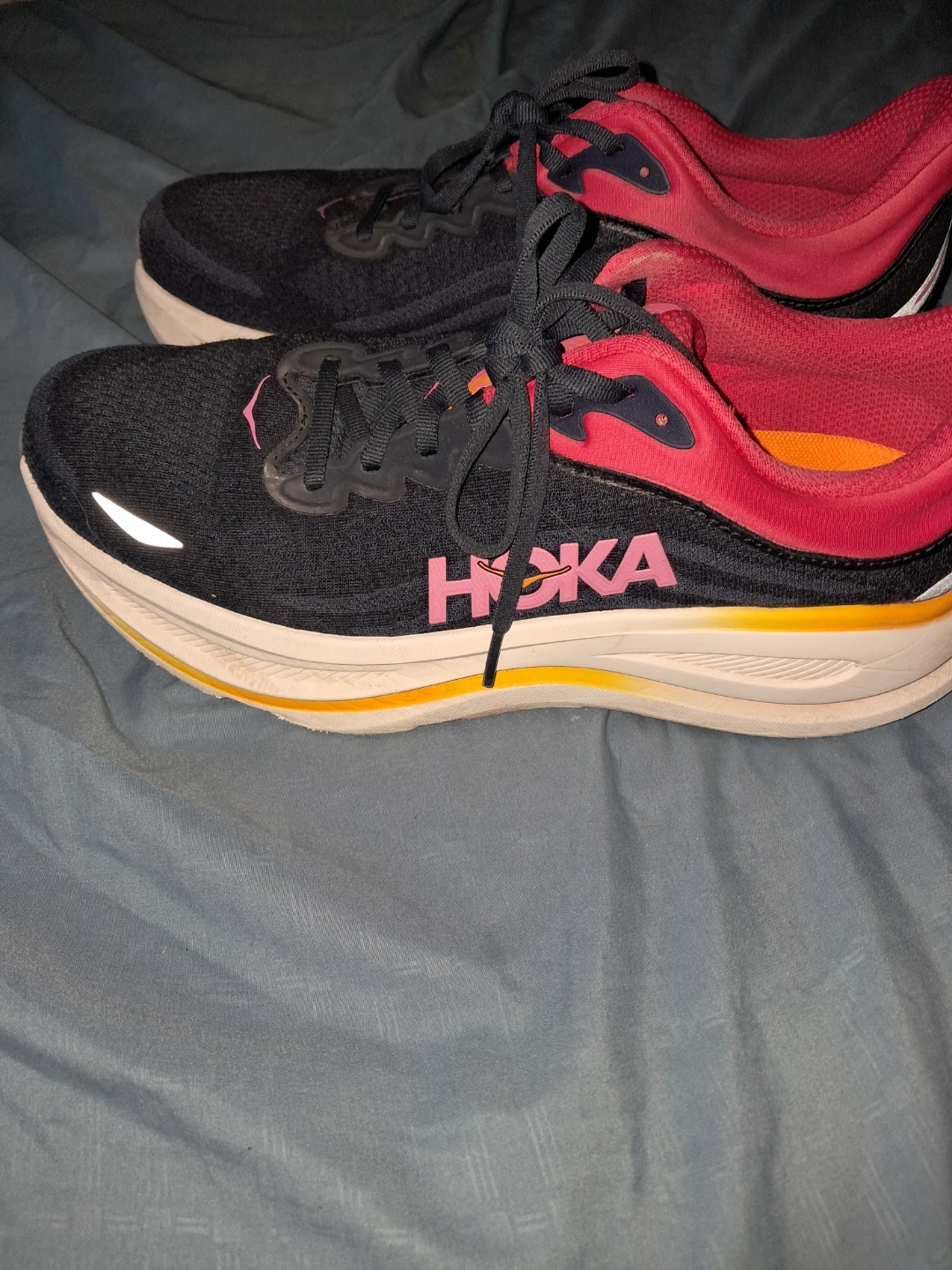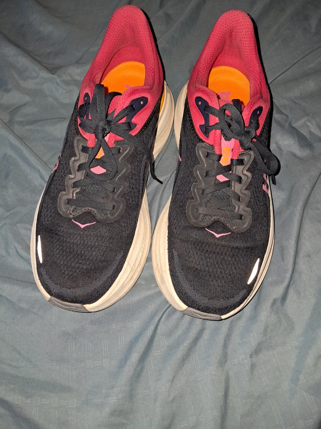 These are Hoka Mach 5 running shoes! They're in good condition and ready for your next run. A lightweight and portable shoe, perfect for everyday training and racing!
