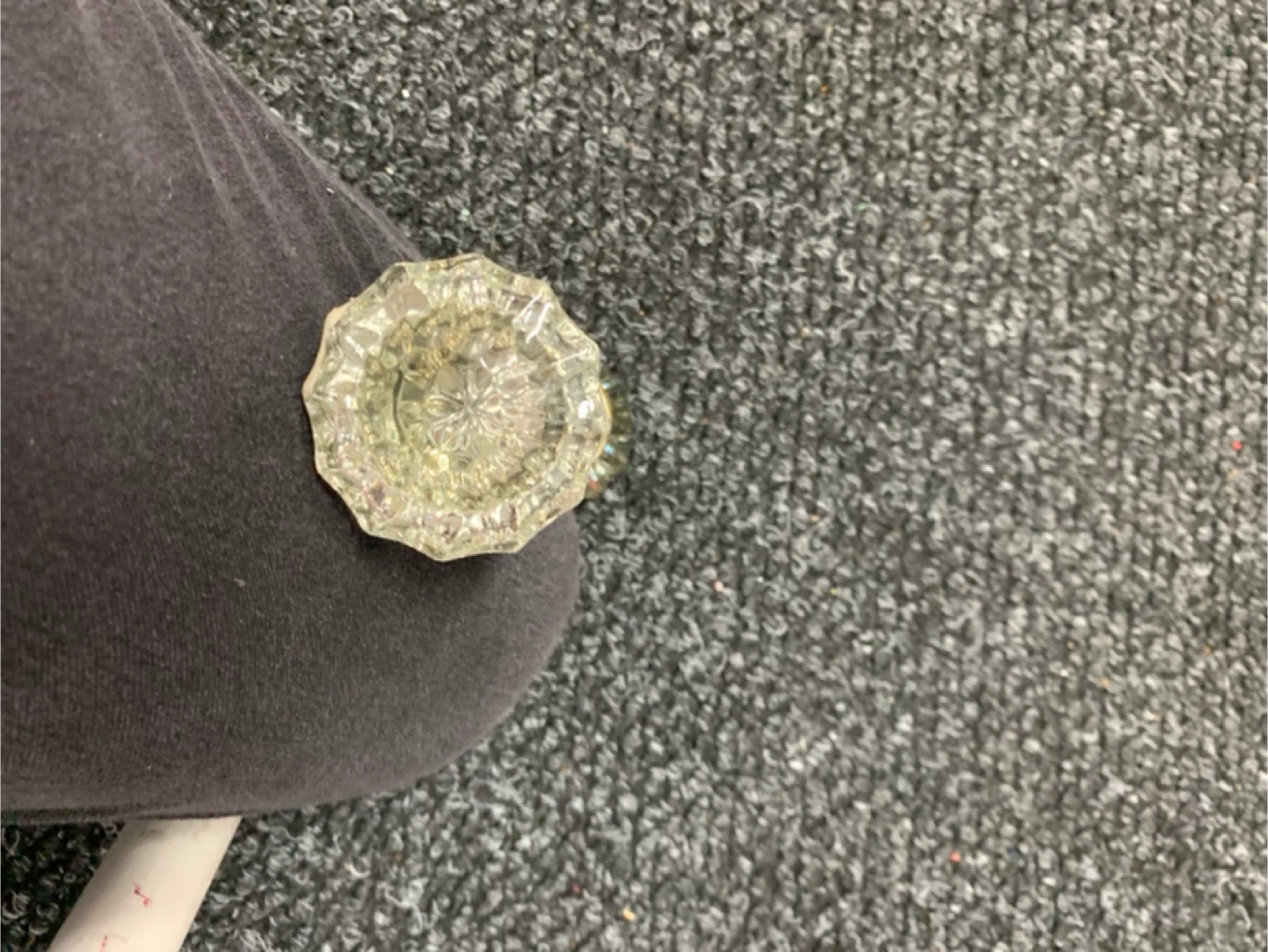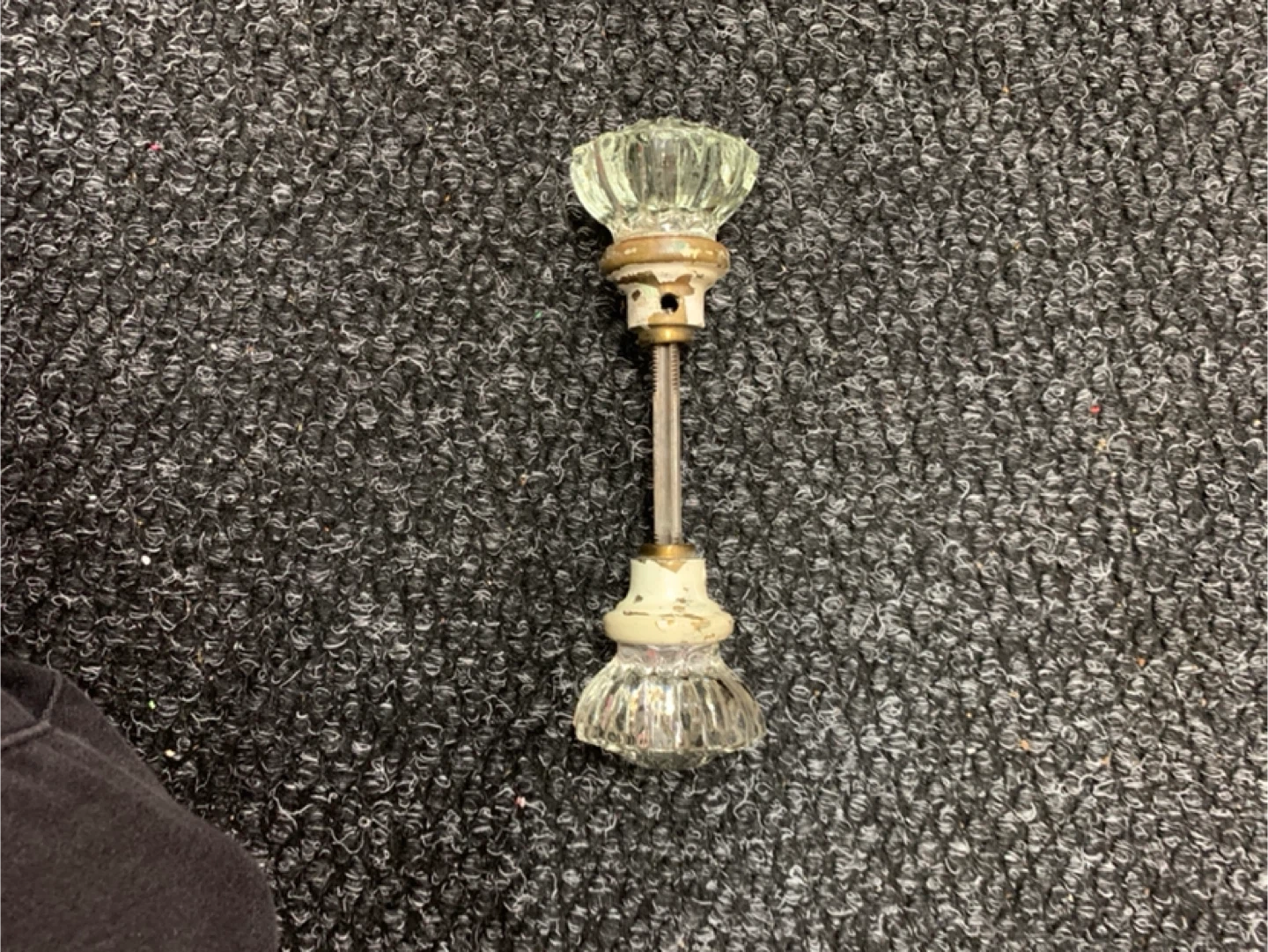 Selling a vintage glass door knob. It has a unique and decorative design that would add a touch of elegance to any door. Perfect for adding a vintage touch to your home!