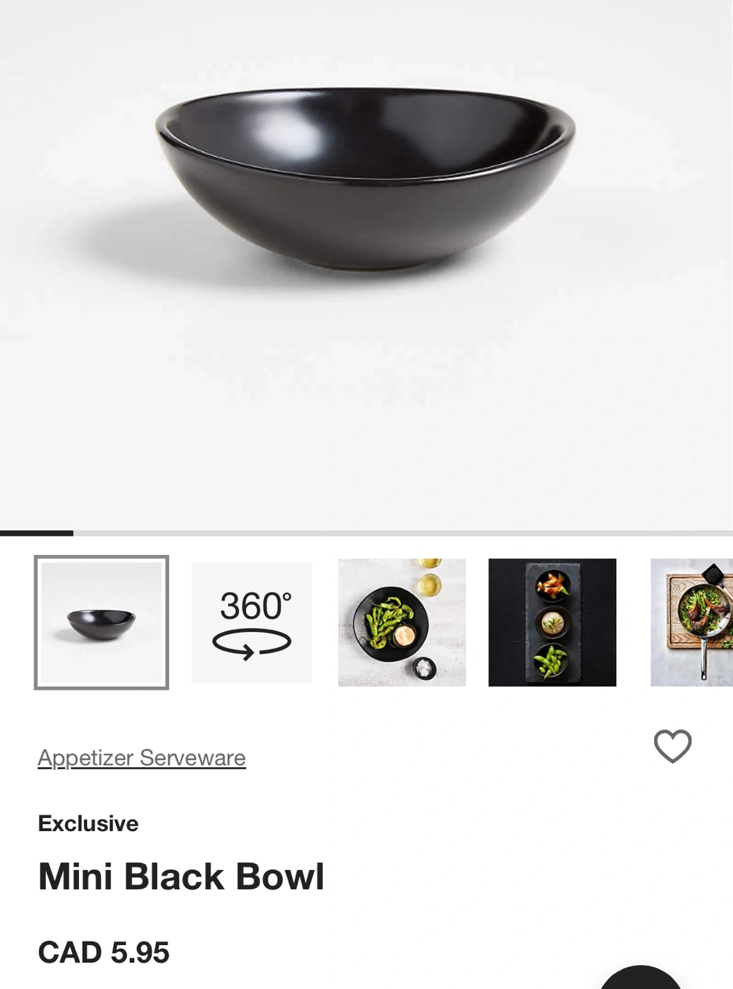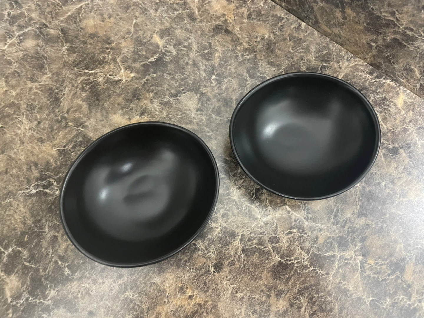 Selling a set of two mini black bowls from Crate & Barrel! They're perfect for appetizers or small servings. These bowls are in great condition and ready to be used in your kitchen or dining area.