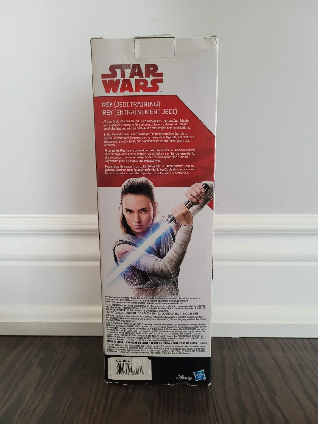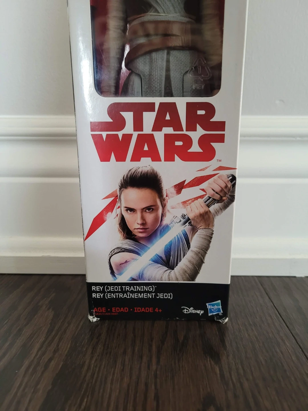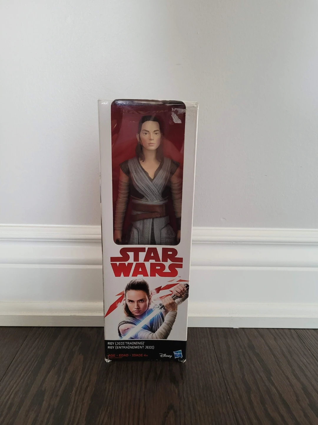 Selling a Star Wars Rey (Jedi Training) action figure! The box indicates it's suitable for ages 4+ and features Rey from her Jedi training. It would make a great gift for any Star Wars fan