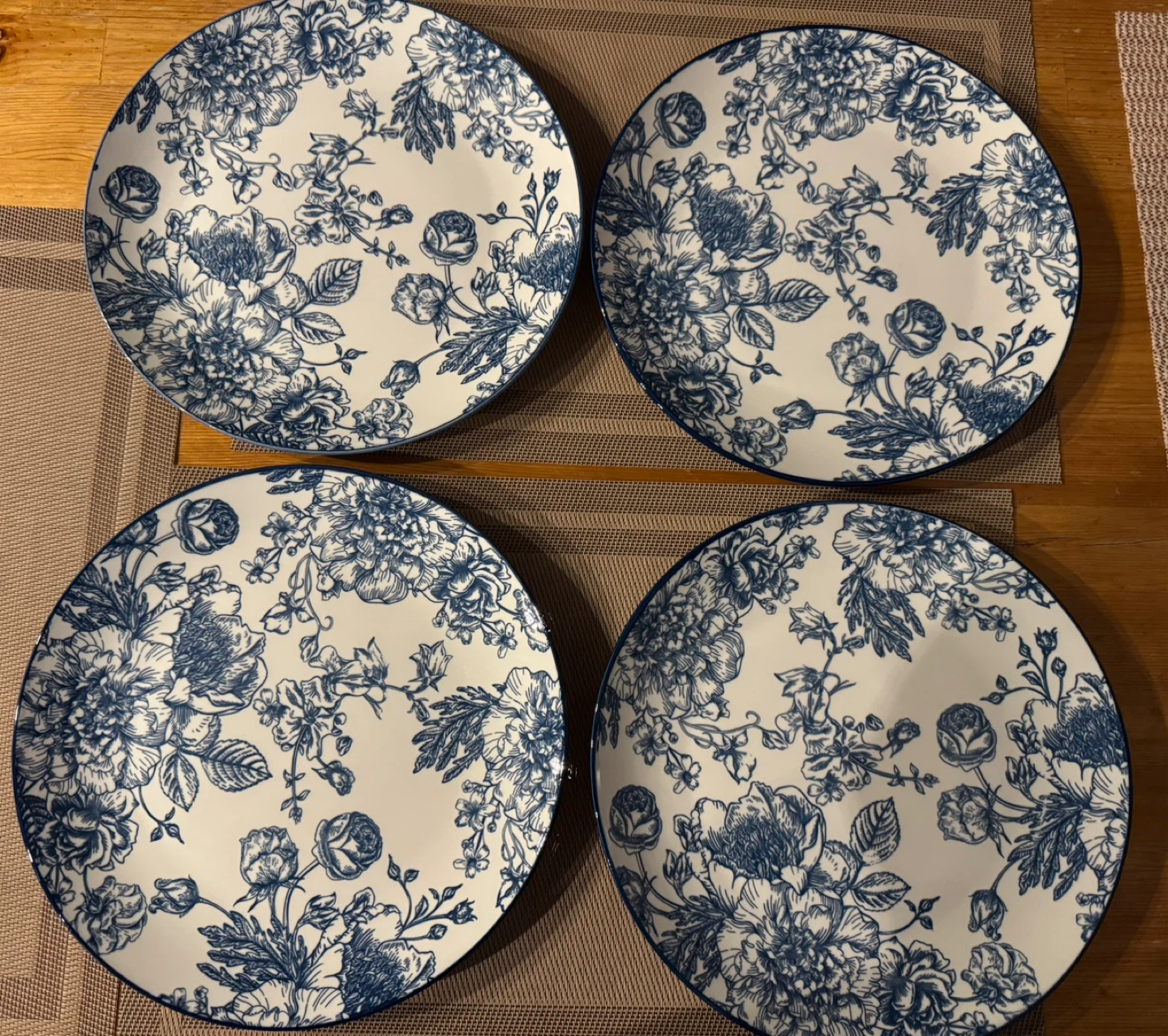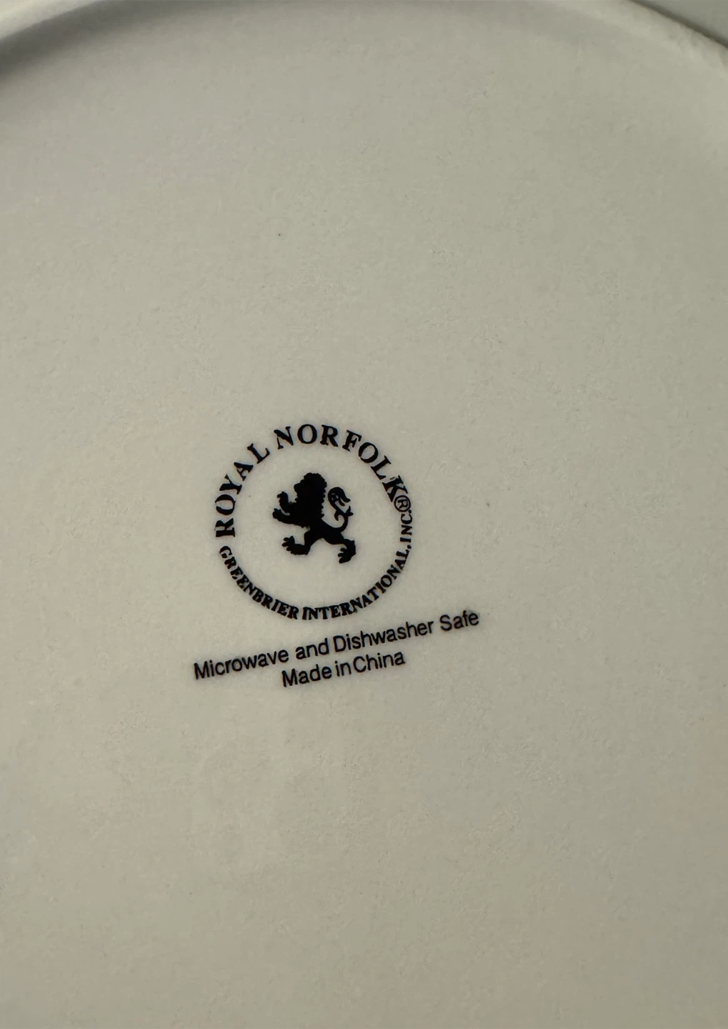 Selling a set of four Royal Norfolk plates with a lovely floral design! They are microwave and dishwasher safe. Perfect for adding a touch of elegance to your dining table.