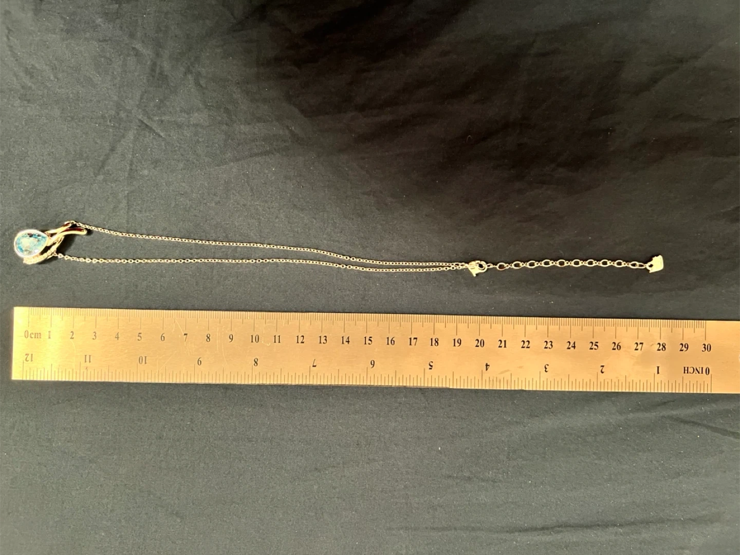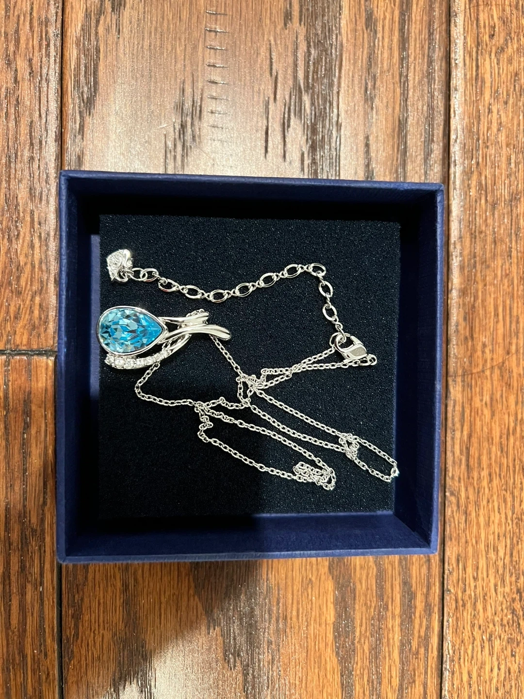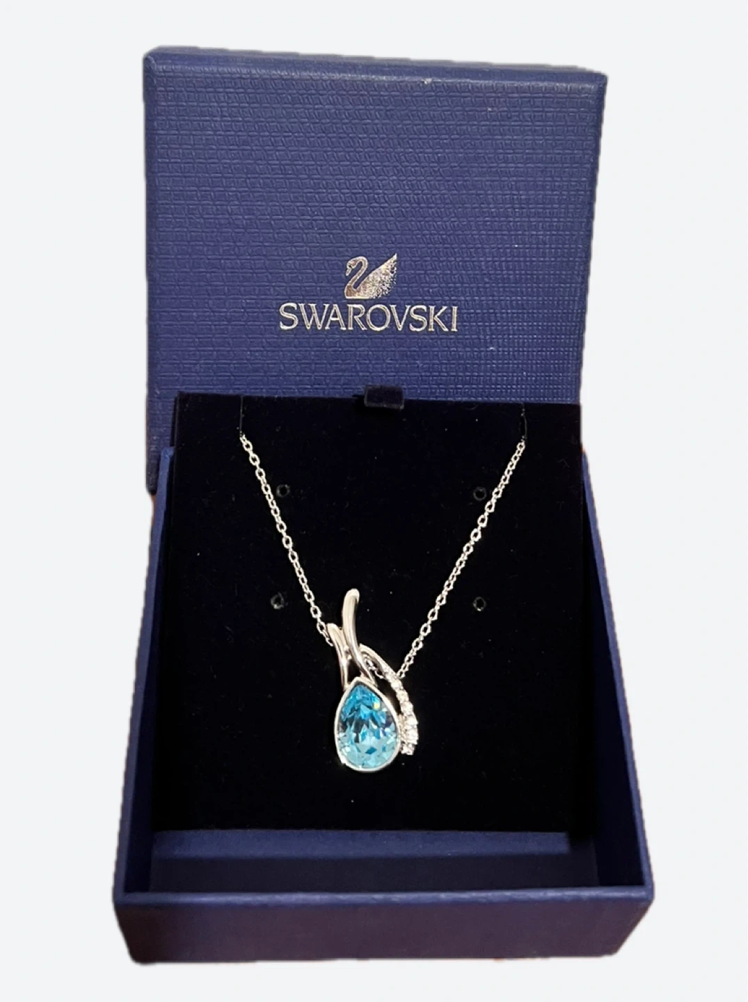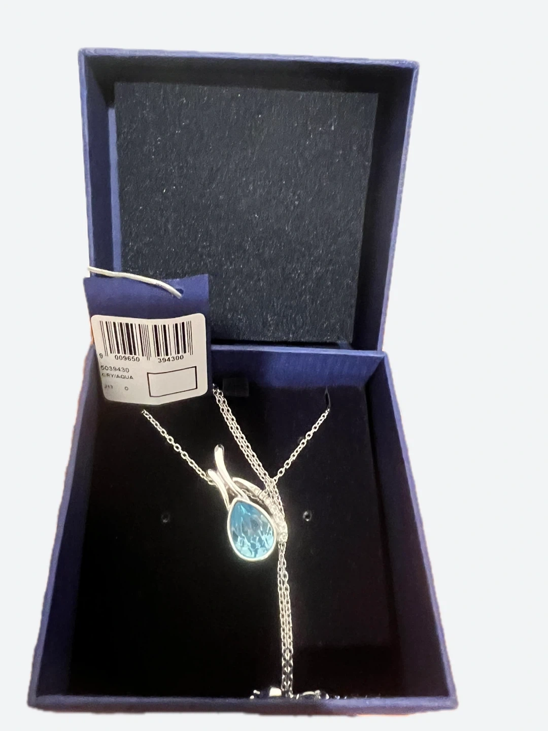 Swarovski necklace with aquamarine crystal pendant. Set on a sleek silver chain. Ideal for a touch of elegance.