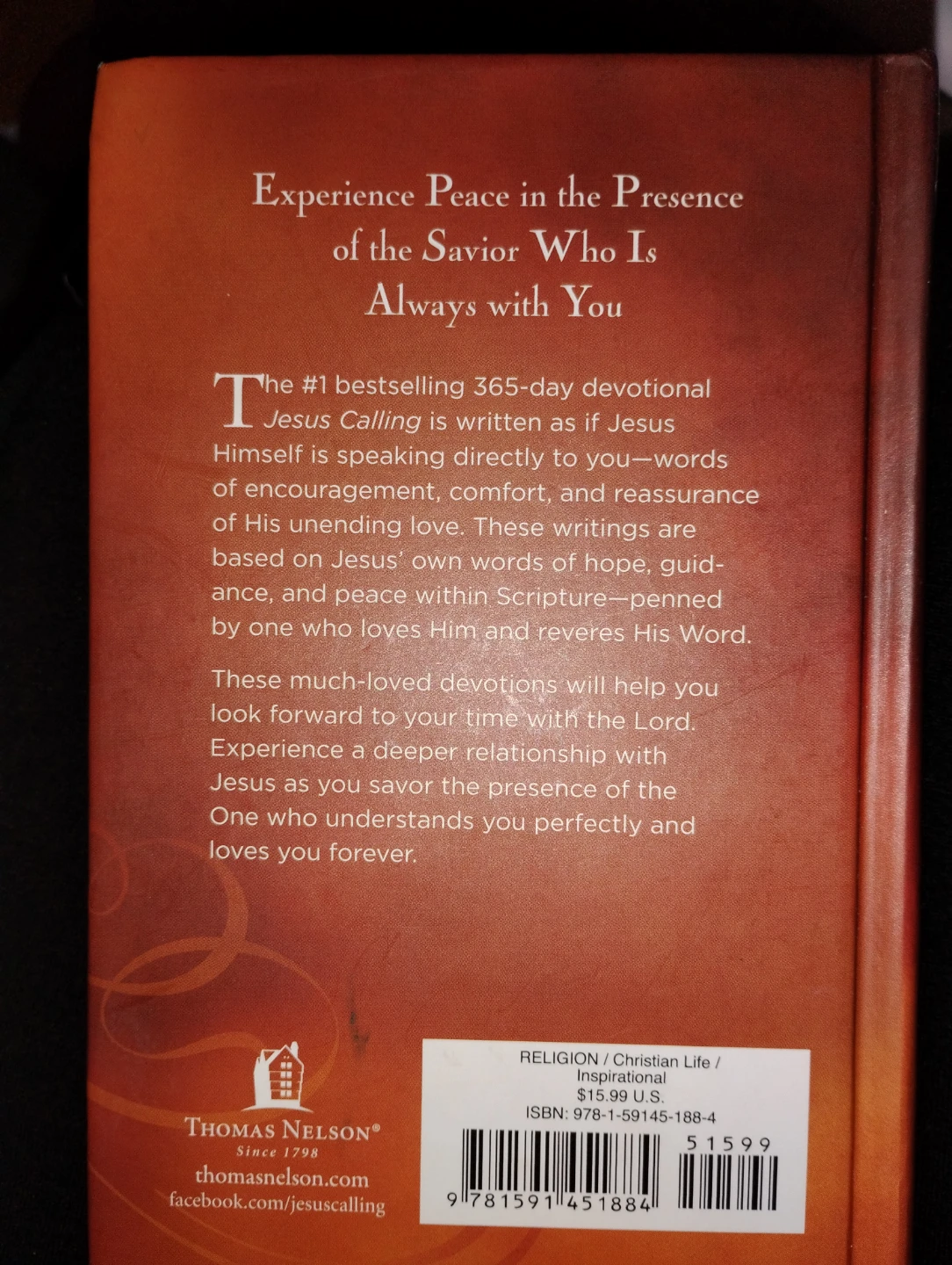 Selling the book Jesus Calling by Sarah Young. It's a devotional for every day of the year, helping you experience peace in His presence. Enjoy these much-loved devotions that will help you look forward to your time with the Lord