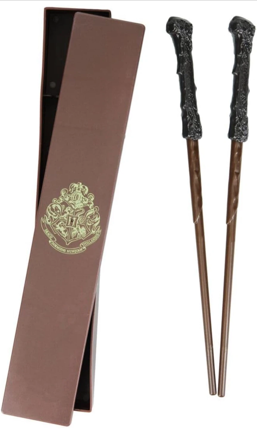 It comes with 2 wand-shaped chopsticks and a carry case. Includes a plastic storage case.