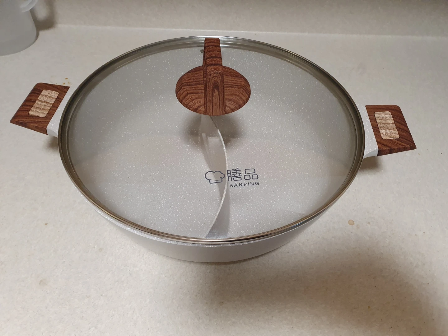 Selling a Sanping hot pot with a divider! It comes with a lid and has two compartments for different broths or sauces. Perfect for hot pot nights with friends and family