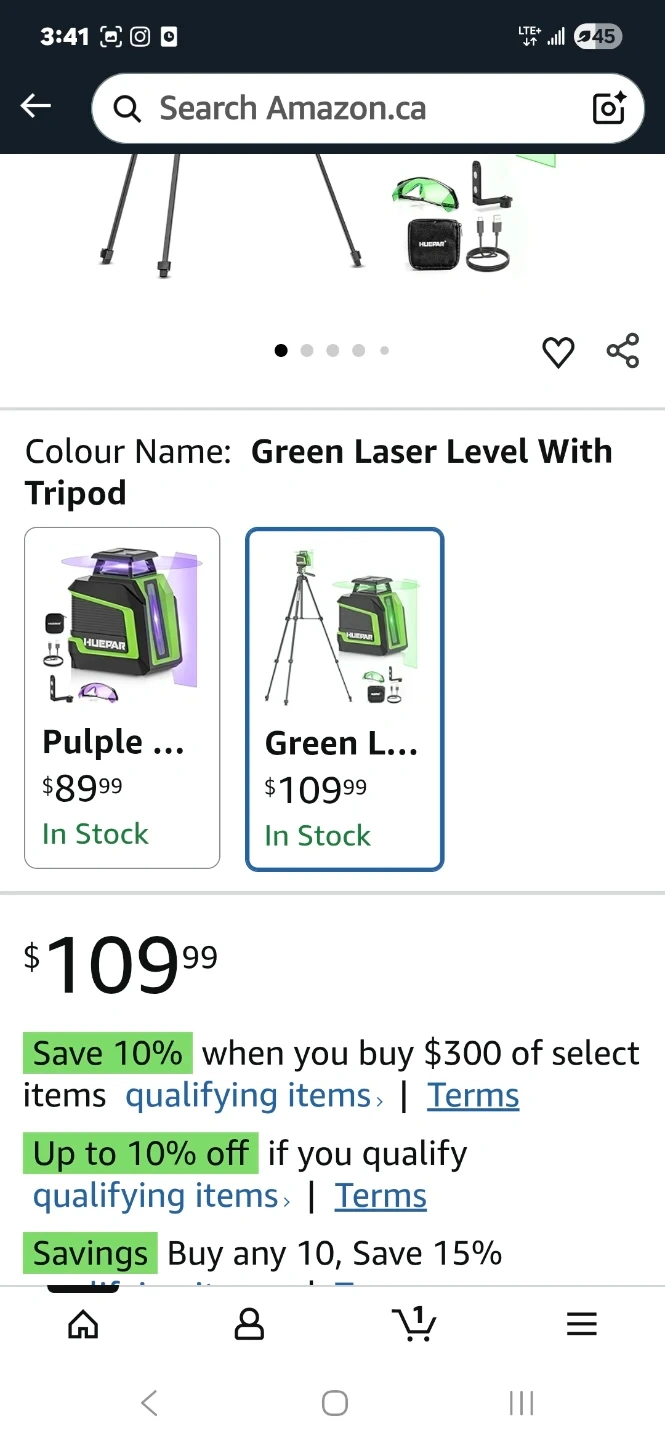 Selling a Huepar rechargeable 360 laser level in green. It comes with the box and all components, including the tripod, user manual, charger, and carrying case. Great for use on walls, floors, and ceilings!