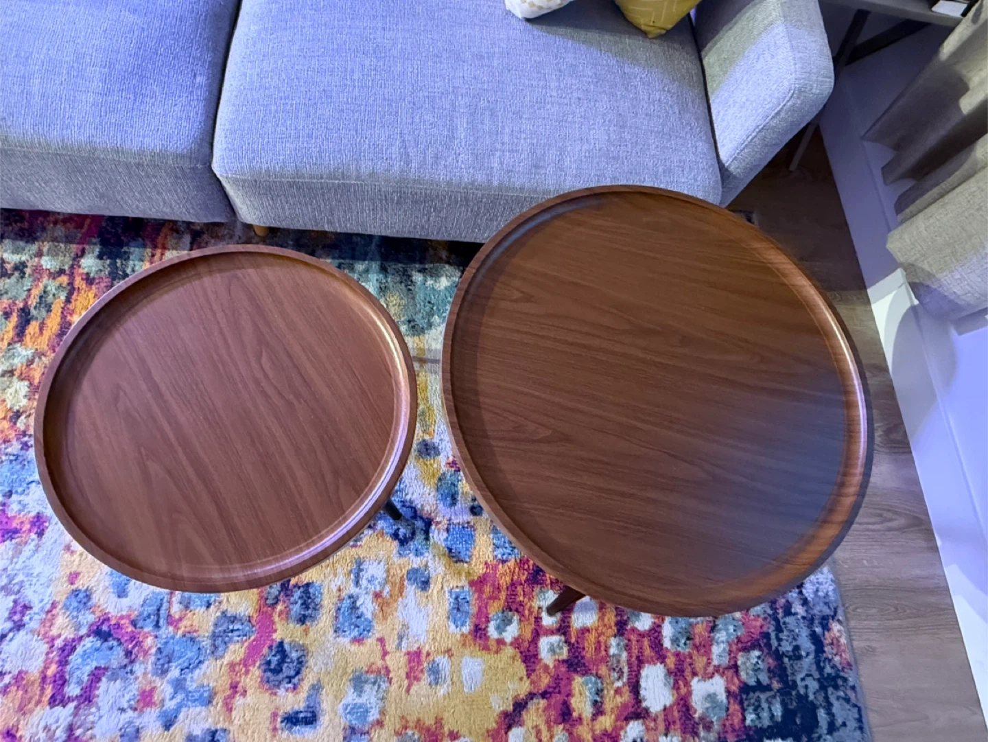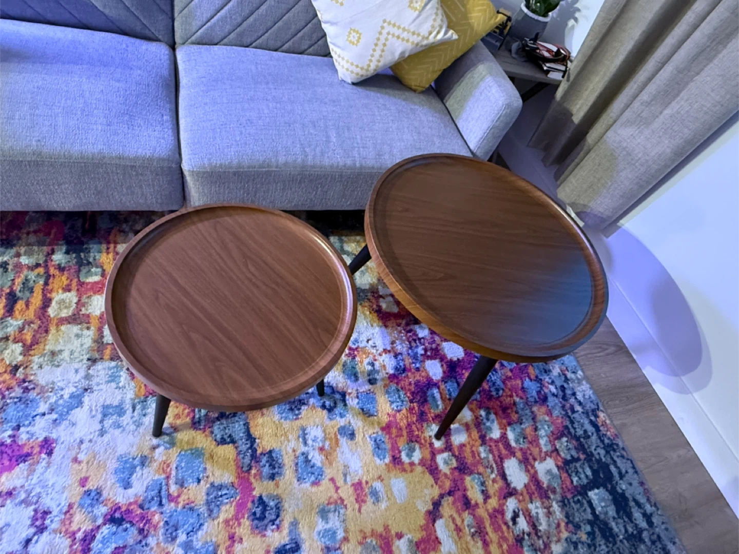 nesting tables in great condition! These mid-century modern tables are perfect for adding a touch of style to your living room. The set includes two tables that nest together for easy storage.