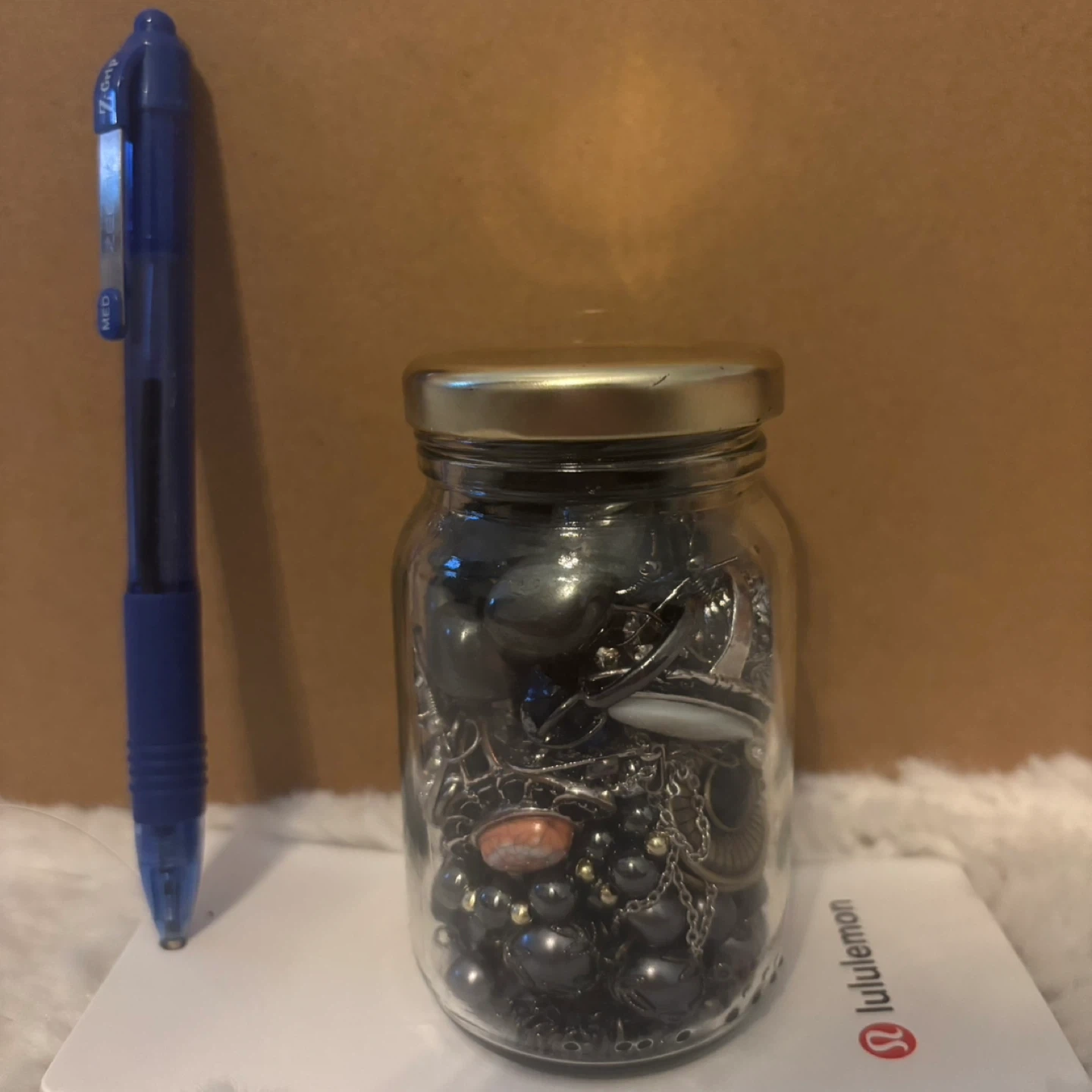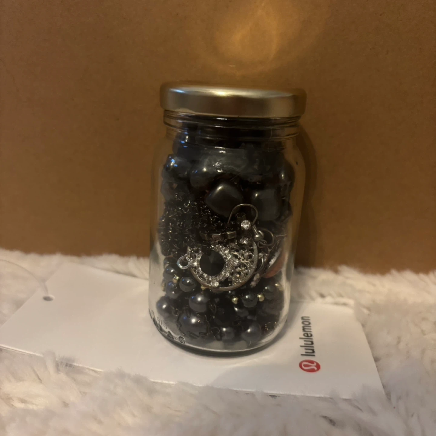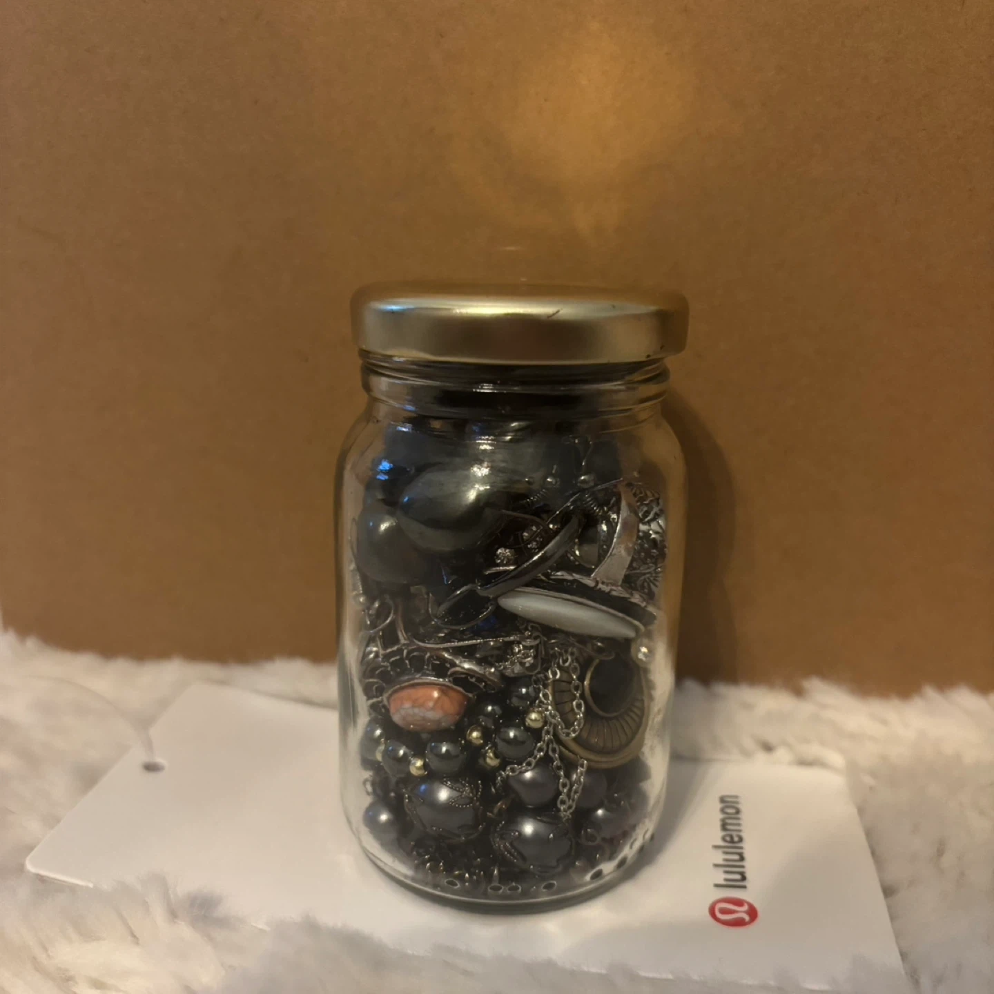 Selling a jar filled with various pieces of jewellery! There's a mix of necklaces, beads, and other fun pieces. Perfect for anyone who loves to accessorize.
