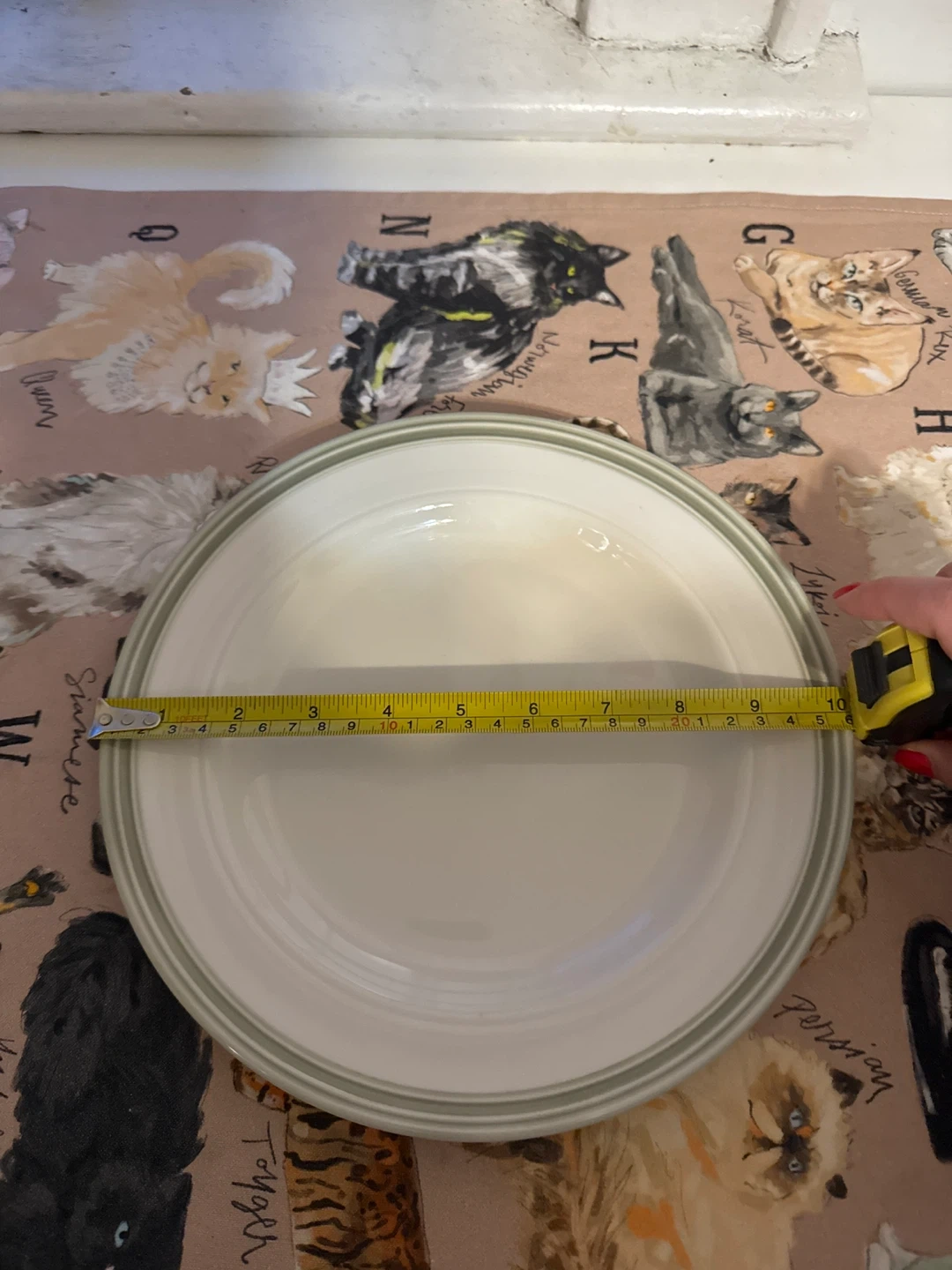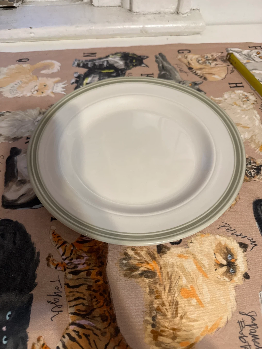 Selling a simple, white dinner plate. It measures about 10 inches in diameter. Perfect for everyday use!