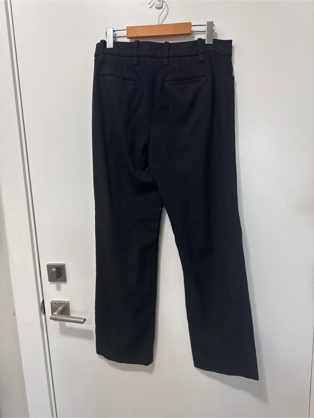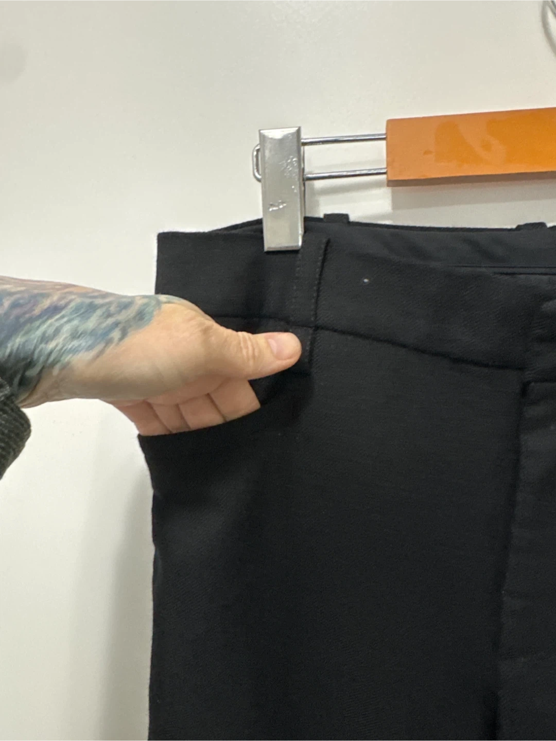 No issues just dont need so many pants. Lightly worn. Wrinkled from storage. Wide leg. 100% wool. Machine wash & hang dry