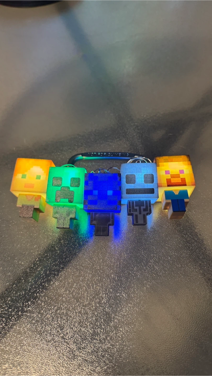 Set of 5 characters with bright coloured lights – perfect for bags, backpacks, or as a cute desk decoration.