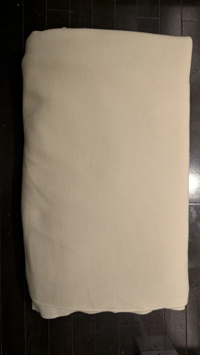 Selling a cozy queen cream blanket! It's in great condition and perfect for adding a touch of warmth to your living space or bedroom. It's been gently used and well cared for, ready to keep you snug on chilly evenings.