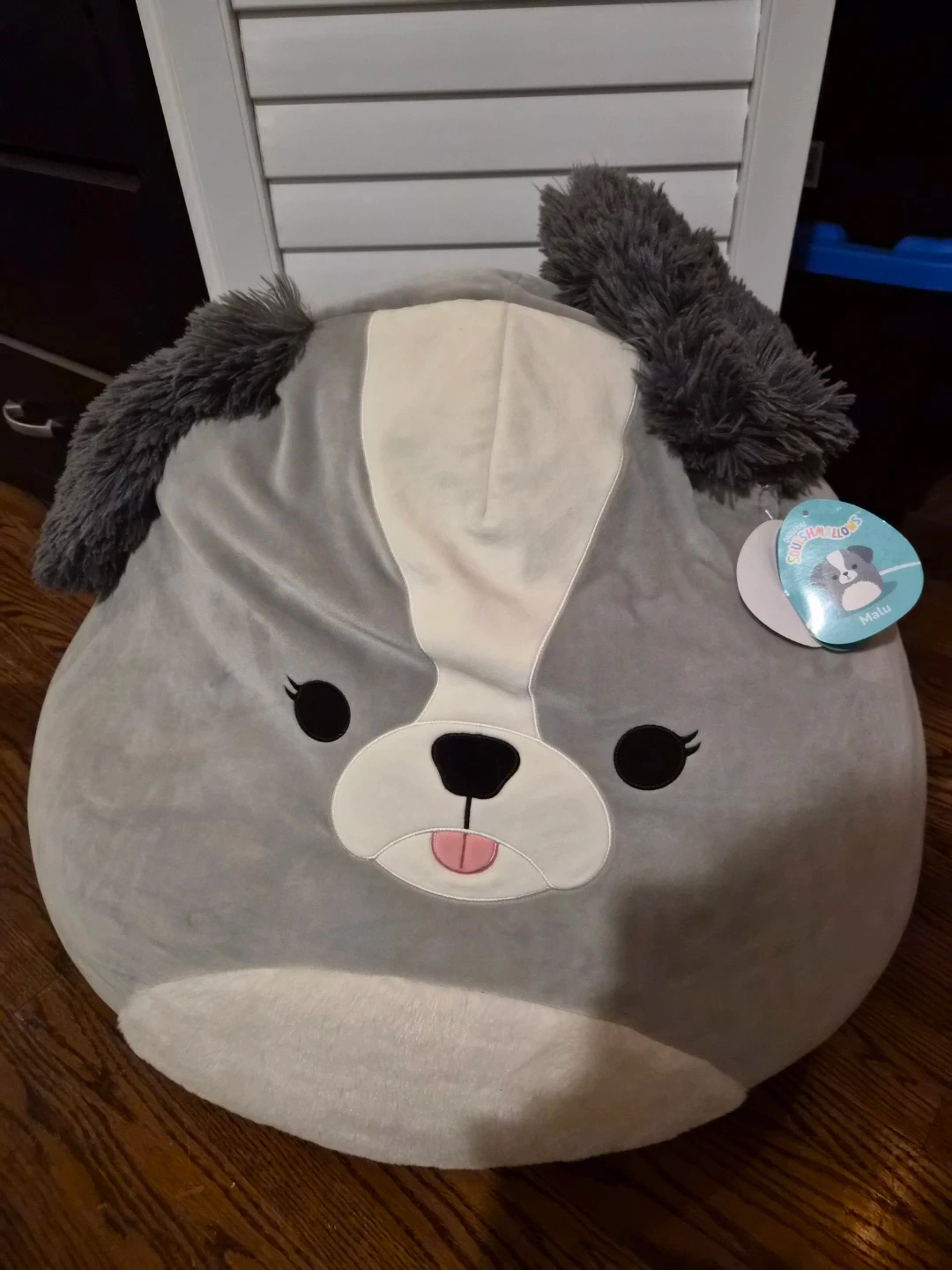 Selling a super cute Jumbo Squishmallows plush! This is Malu, the grey and white dog. It's in great condition and ready for a new home.