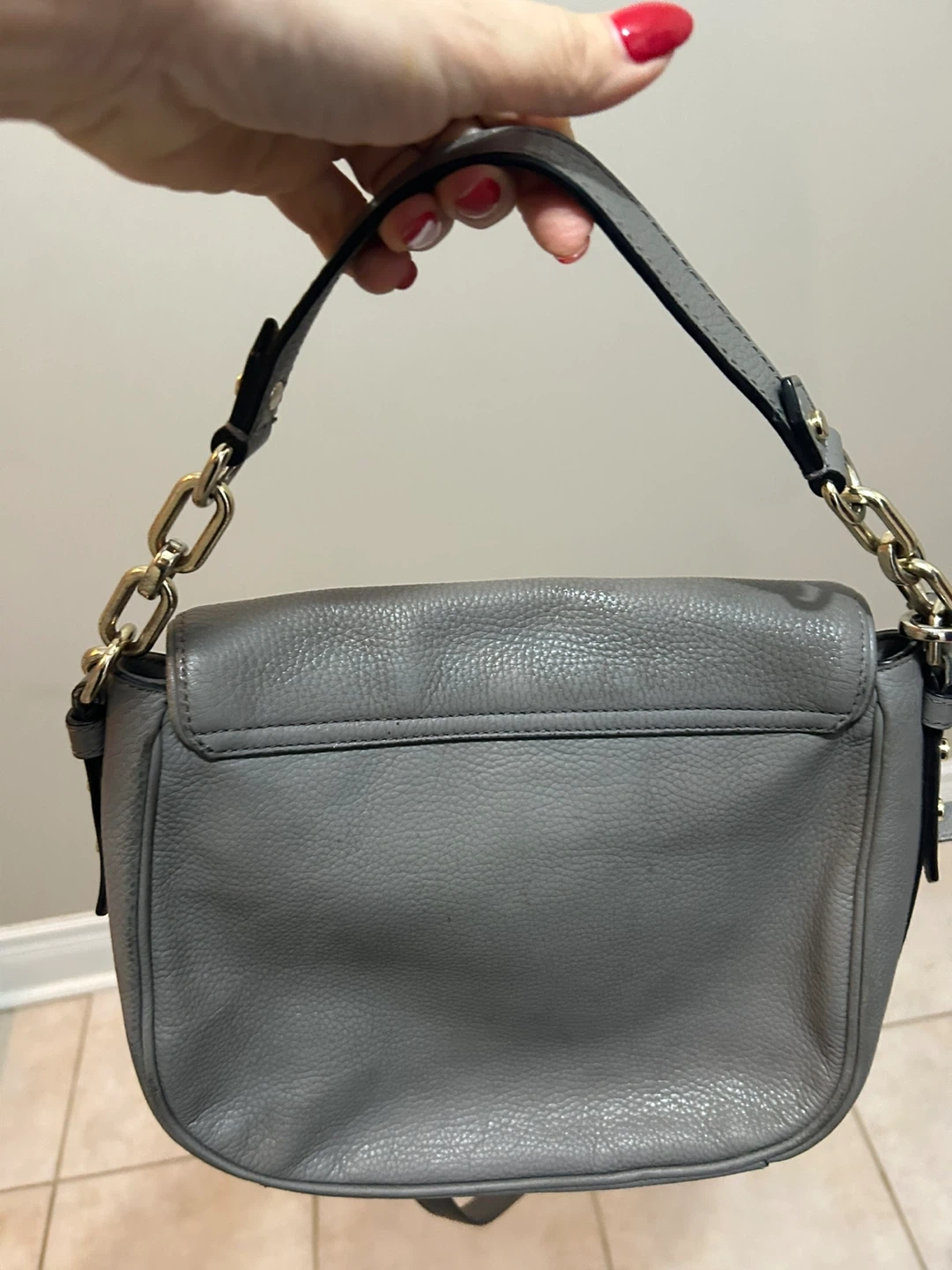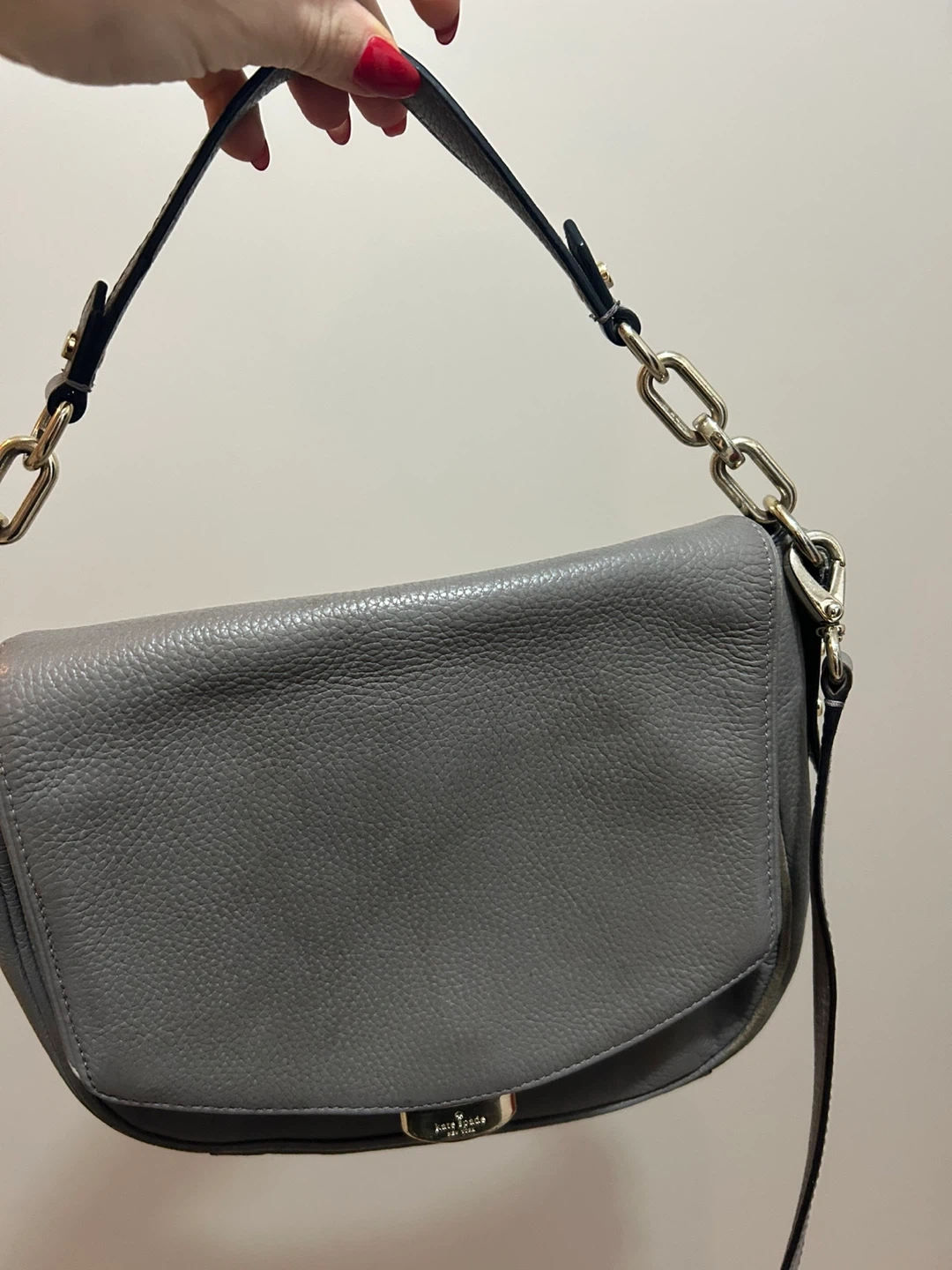 Selling a lovely Kate Spade shoulder bag in a stylish grey leather. It's in good condition and perfect for everyday use! The bag features a chain-link strap and a classic design that will complement any outfit.