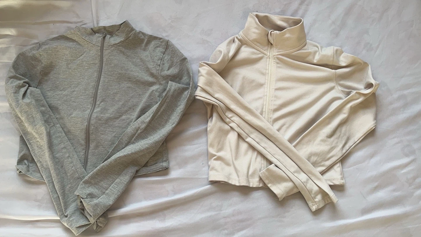 Tight Zip-Ups and sweaters!- Grey & Beige and pink