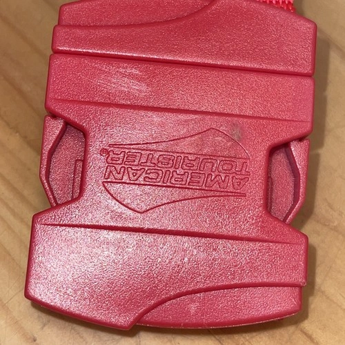 The product is a lot of three red American Tourister luggage straps, each measuring 2" x 73" and adjustable. These durable and high-quality straps are perfect for securing your luggage while traveling. The American Tourister brand is known for its reliability and durability, making these straps a convenient and essential accessory for any traveler. See all pictures of item. Sold as is.